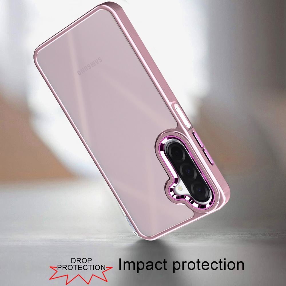 For Samsung A17 5G Polished Oil Thick Acrylic Metal Button Hybrid Case Cover - Light Pink
