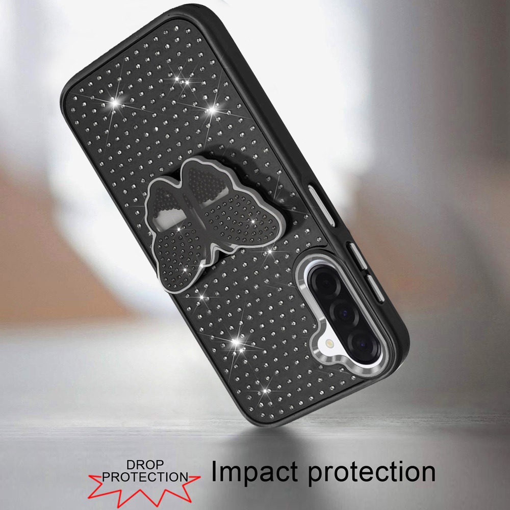 For Samsung A17 5G Butterfly Moveable Grip Stand With Small Diamonds Meta Buttons HQ Hybrid - Black