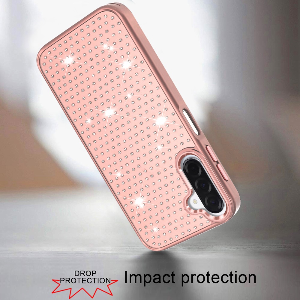 For Samsung A17 5G Beautiful Diamond Metallic Design Metal Chrome Edged Hybrid - Rose Gold