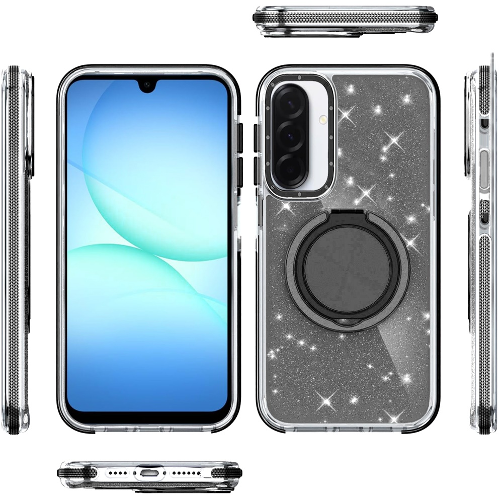 For Samsung A17 5G Glitz HQ Shimmer Glitter [Magnetic Ring Circle] with 360 degree Rotational Ring Kickstand Tough Hybrid Case - Black