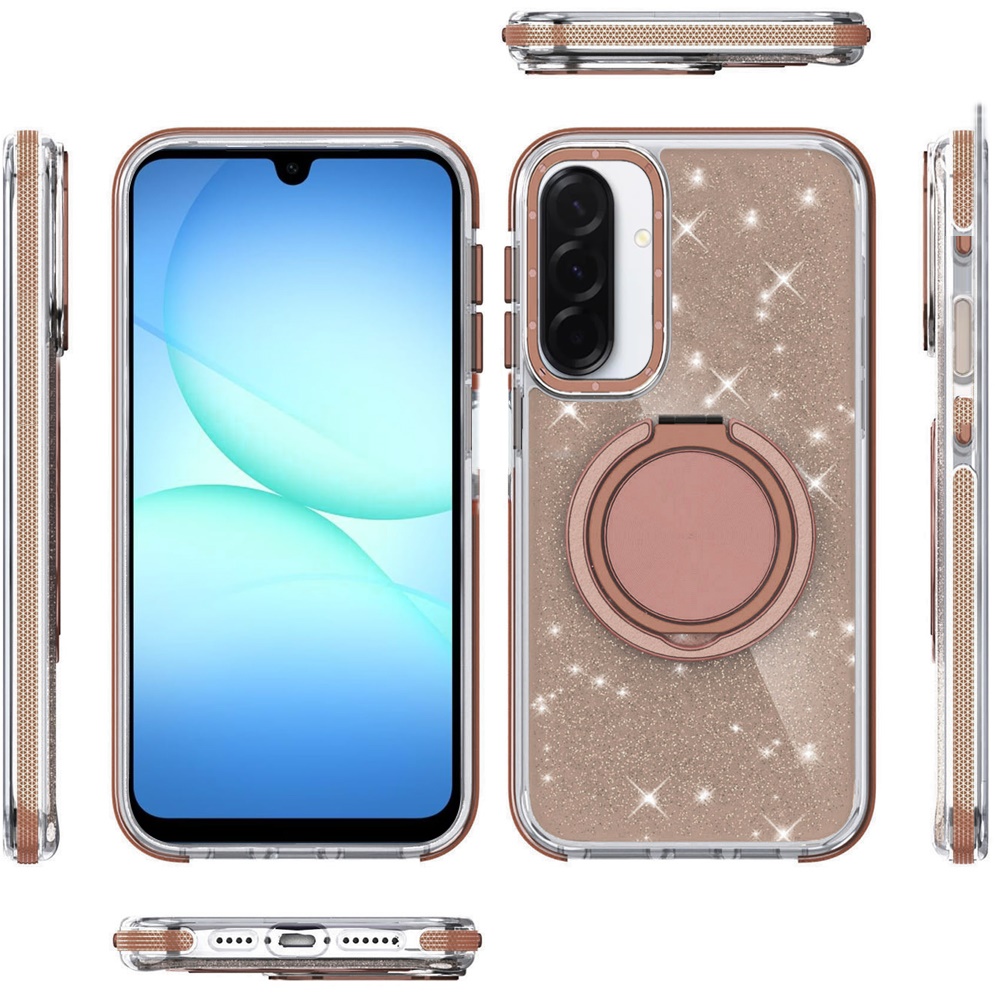 For Samsung A17 5G Glitz HQ Shimmer Glitter [Magnetic Ring Circle] with 360 degree Rotational Ring Kickstand Tough Hybrid Case - Gold