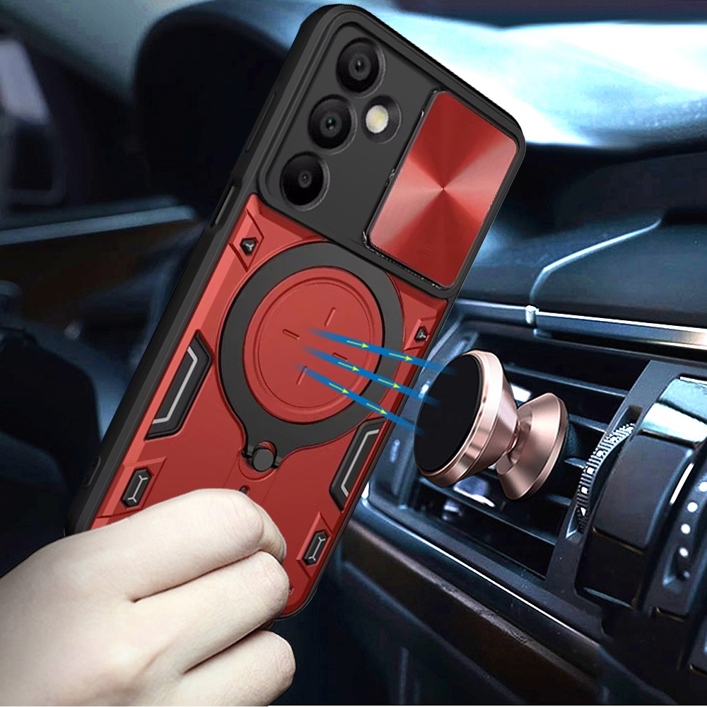 For Samsung A17 5G Magnetic Ring Stand Classic Design FULL Camera Protection Hybrid Case - Red