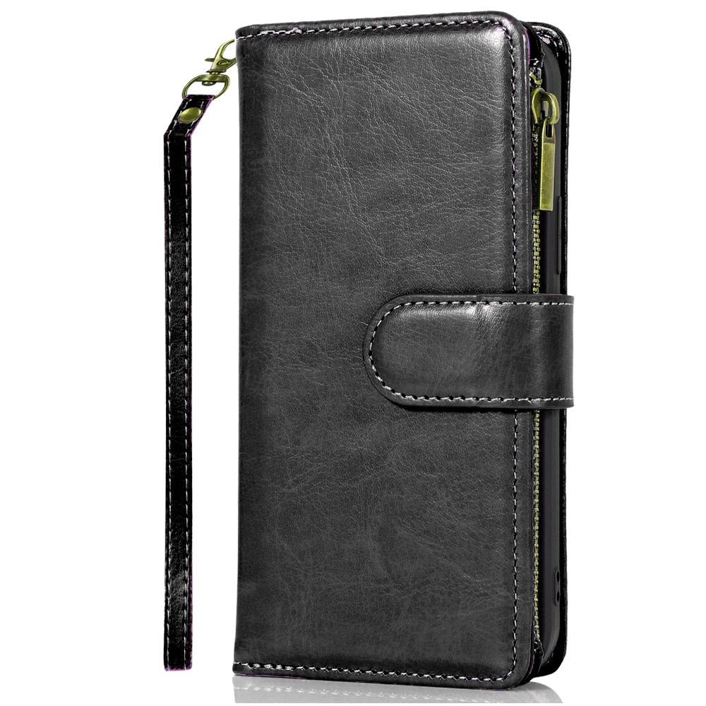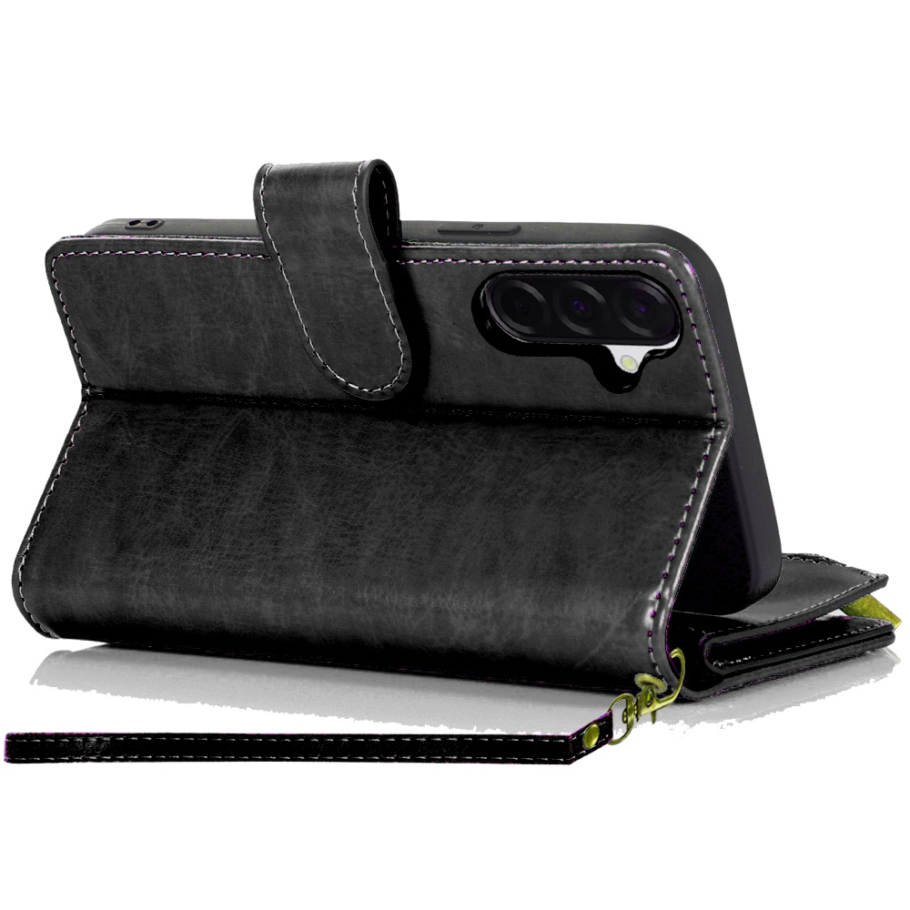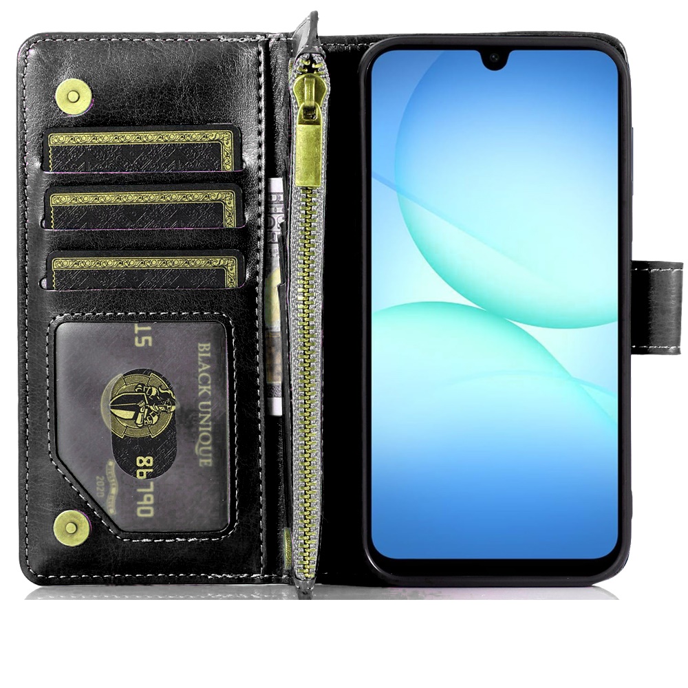 For Samsung A17 5G Luxury Wallet Card ID Zipper Money Holder Case Cover - Black