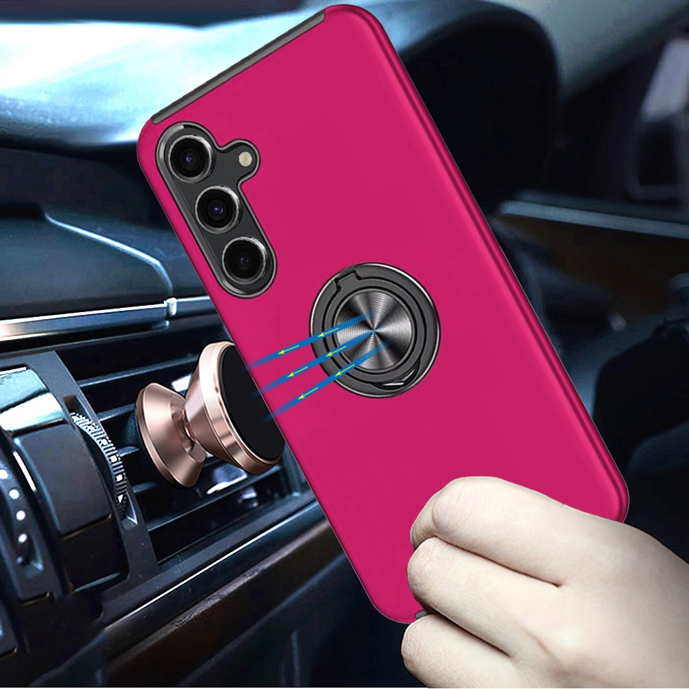For Samsung s25 FE CHIEF Oil Painted Magnetic Ring Stand Hybrid Case Cover - Hot Pink
