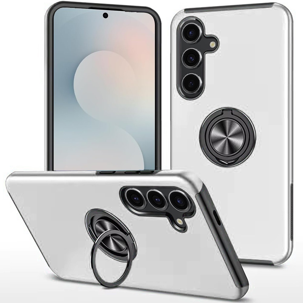 For Samsung s25 FE CHIEF Oil Painted Magnetic Ring Stand Hybrid Case Cover - Silver