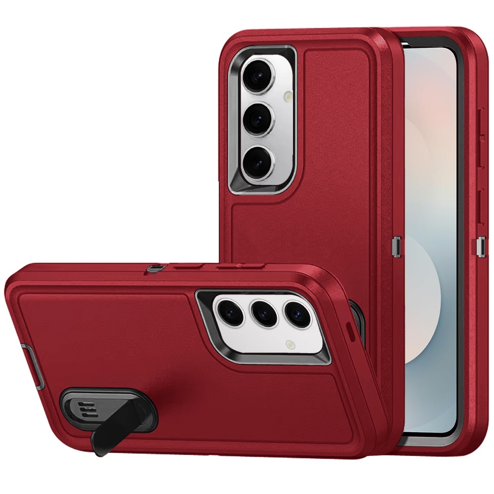 For Samsung s25 FE PEAK 3in1 Toughest Hybrid with Stand Cover Case - Black/Red