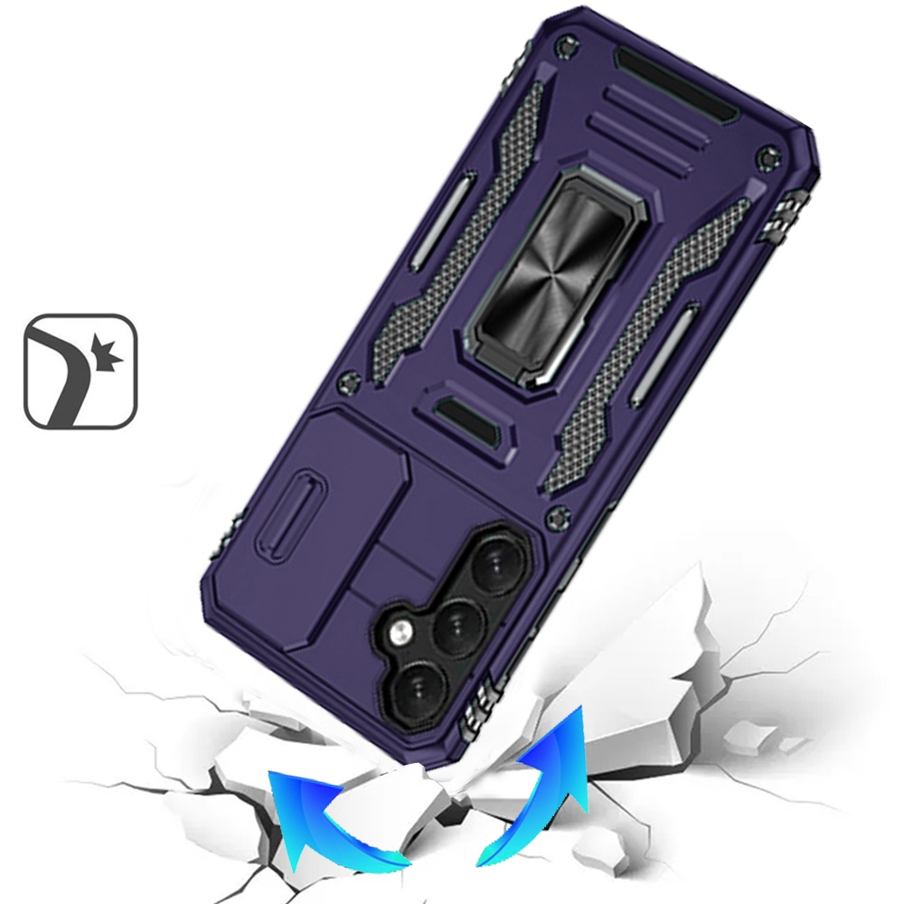 For Samsung s25 FE Utter Tough Metal Ring Movable Camera Window Hybrid Case Cover - Dark Purple
