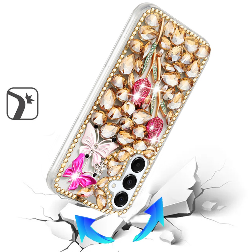 For Samsung s25 FE Full Diamond with Ornaments Case Cover - Gold Exquisite Garden