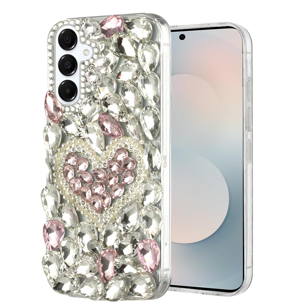For Samsung s25 FE Full Diamond with Ornaments Case Cover - Hearty Pink Pearl Heart