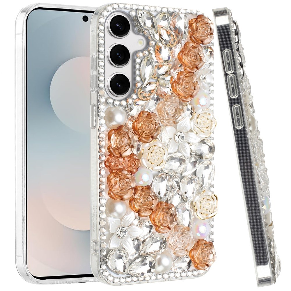 For Samsung s25 FE Rose Flower Full Diamond Bling Stones - Gold