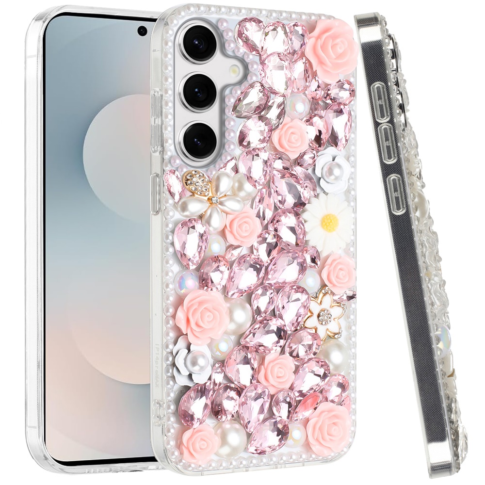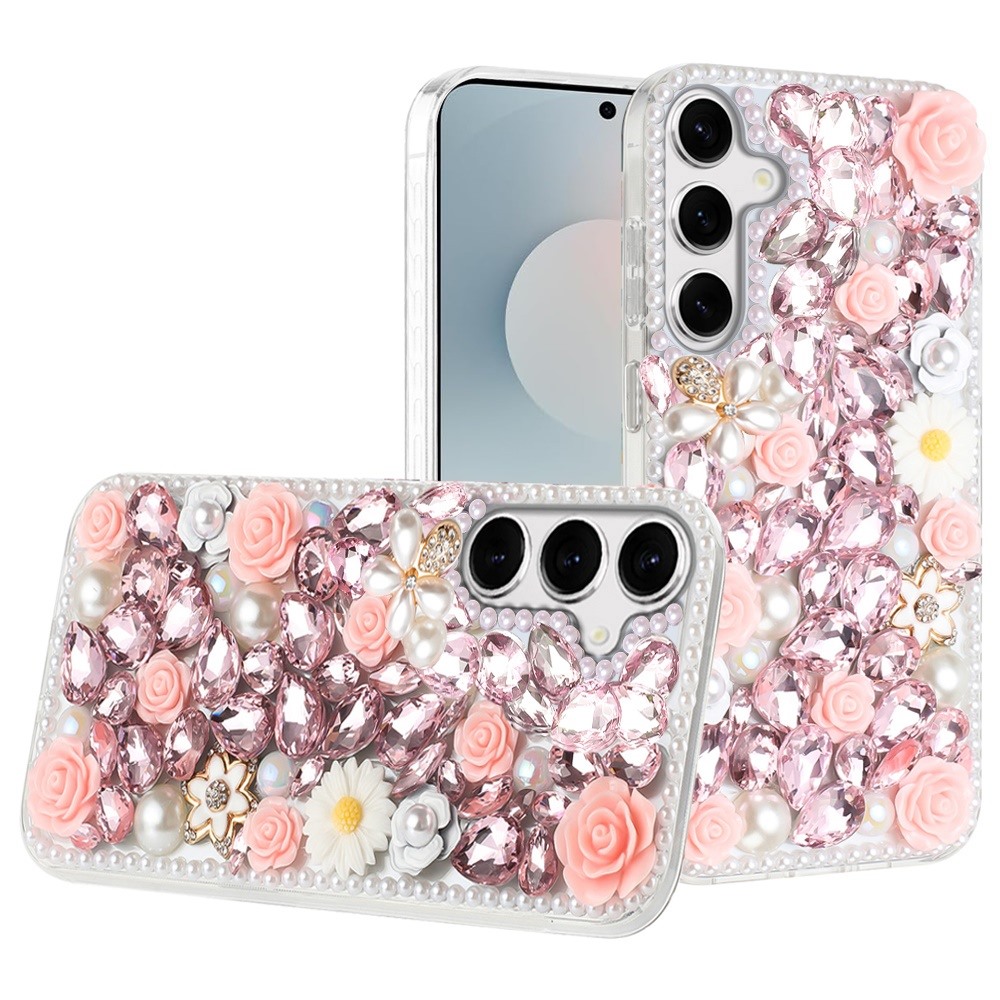 For Samsung s25 FE Rose Flower Full Diamond Bling Stones - Pink