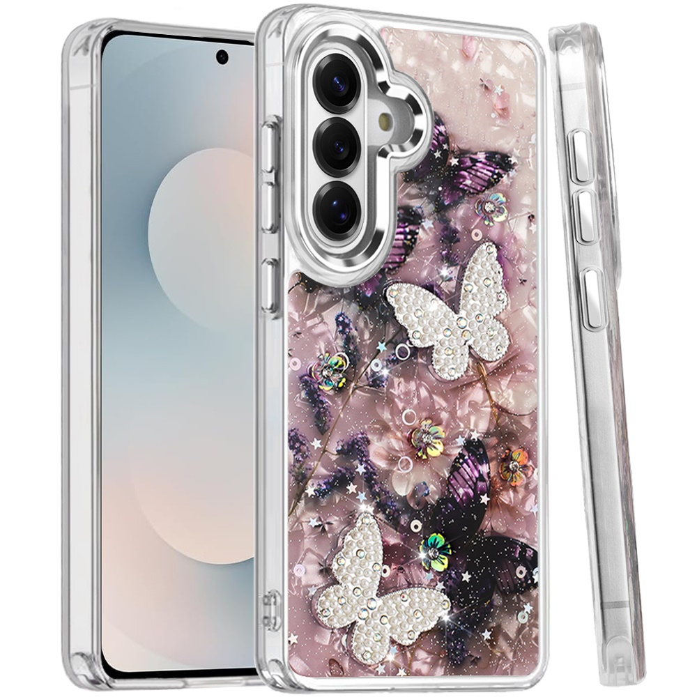 For Samsung s25 FE Epoxy Glitter Butterfly Ornaments Design HQ Metal Buttons Hybrid - 5