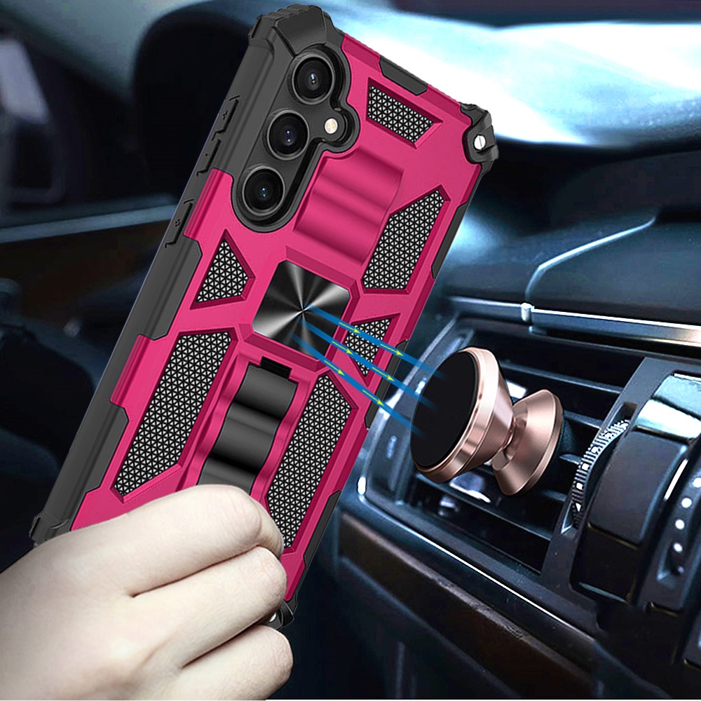 For Samsung s25 FE Machine Design Hybrid with Kickstand - Hot Pink