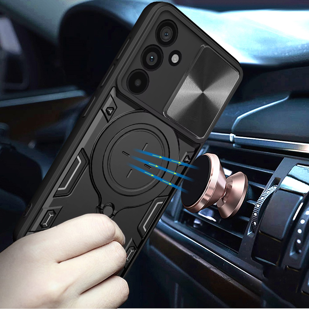 For Samsung s25 FE Magnetic Ring Stand Classic Design FULL Camera Protection Hybrid Case - Black