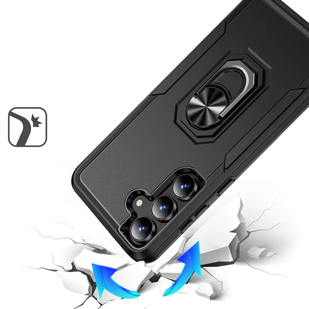 For Samsung s25 FE Tough Hybrid With Ring Stand Case - Black