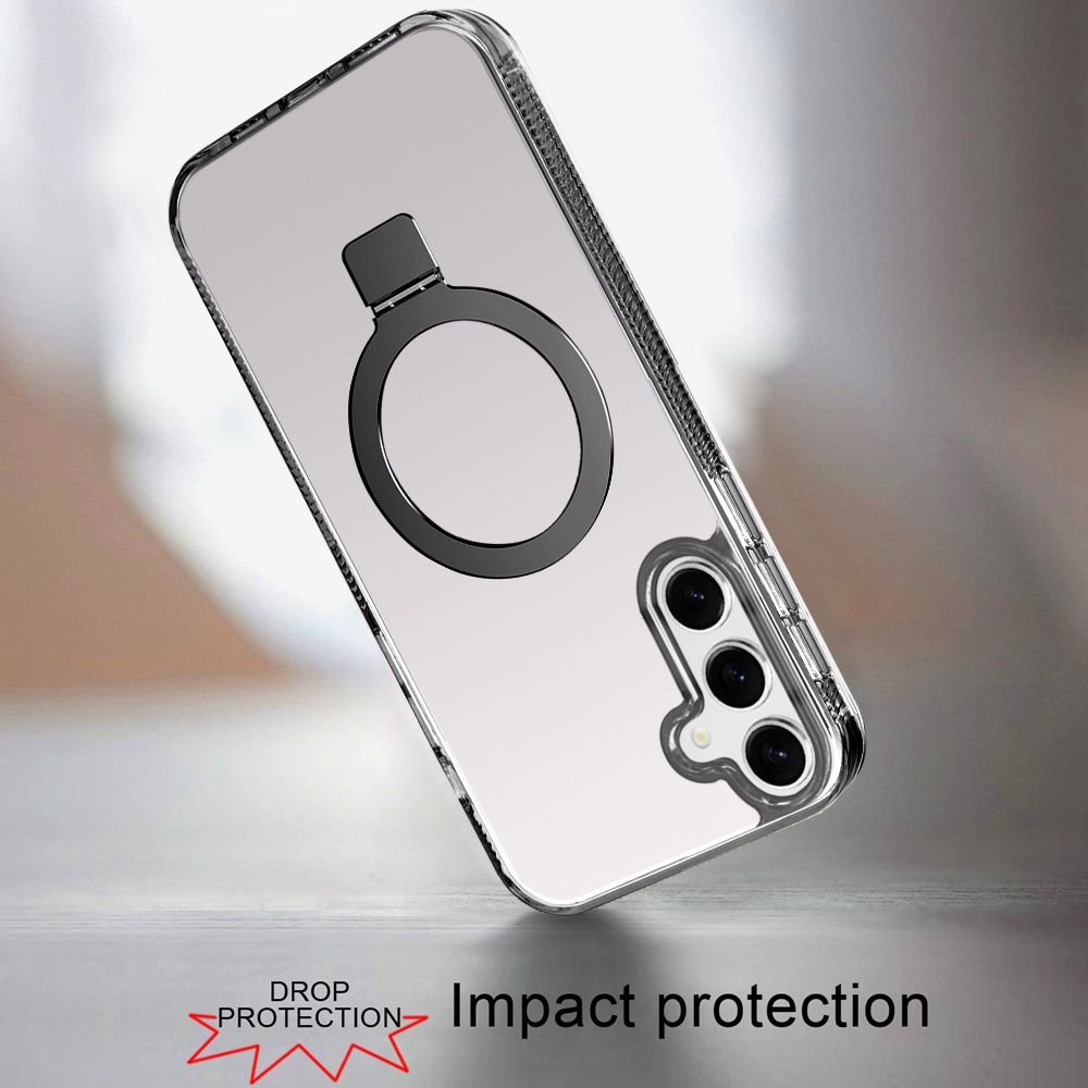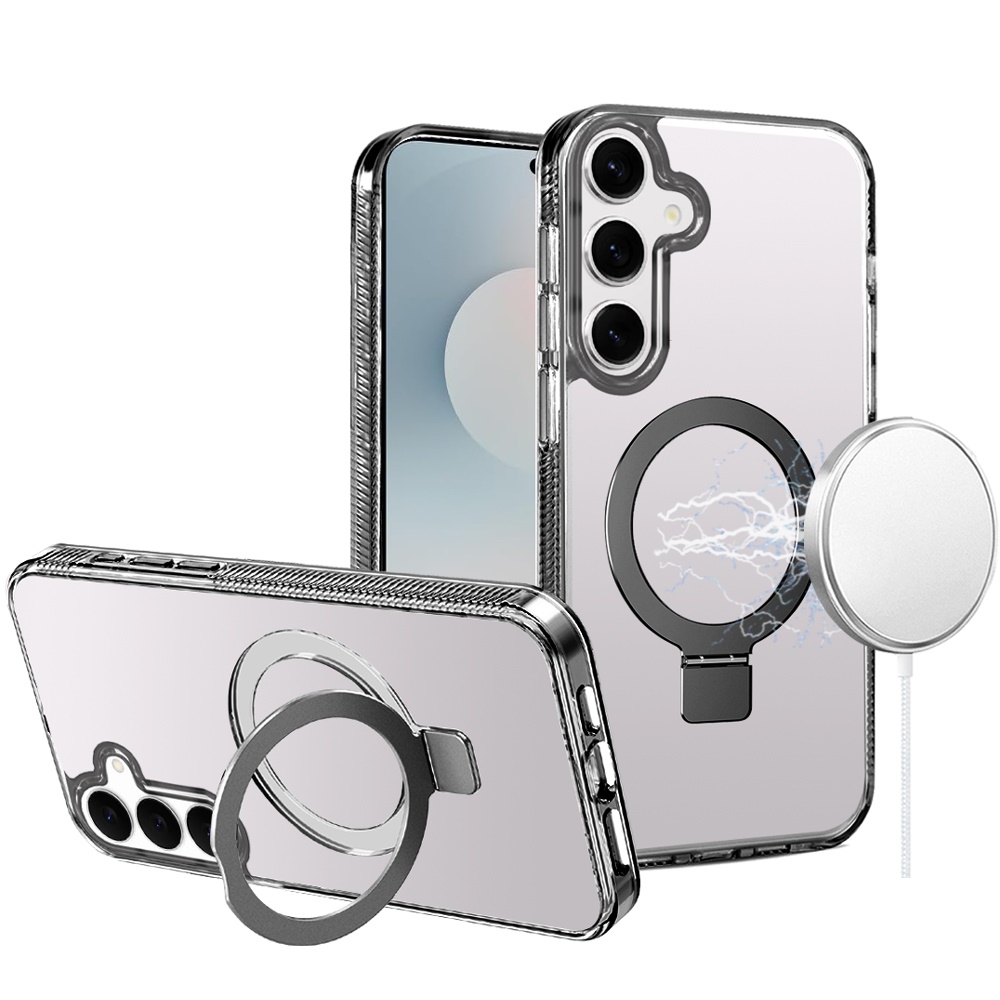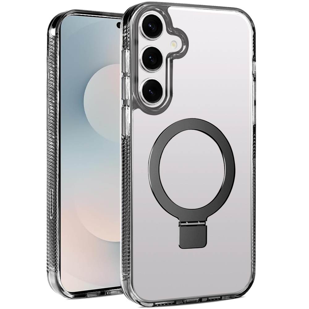 For Samsung s25 FE Dotted Edged Line Transparent HQ Magnetic Ring Stand Hybrid - Black