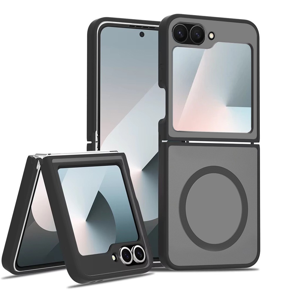 For Samsung Z Flip 6/Z Flip 7 FE [Magnetic Circle] Smooth Safe Matte Feel Hybrid Case - Black