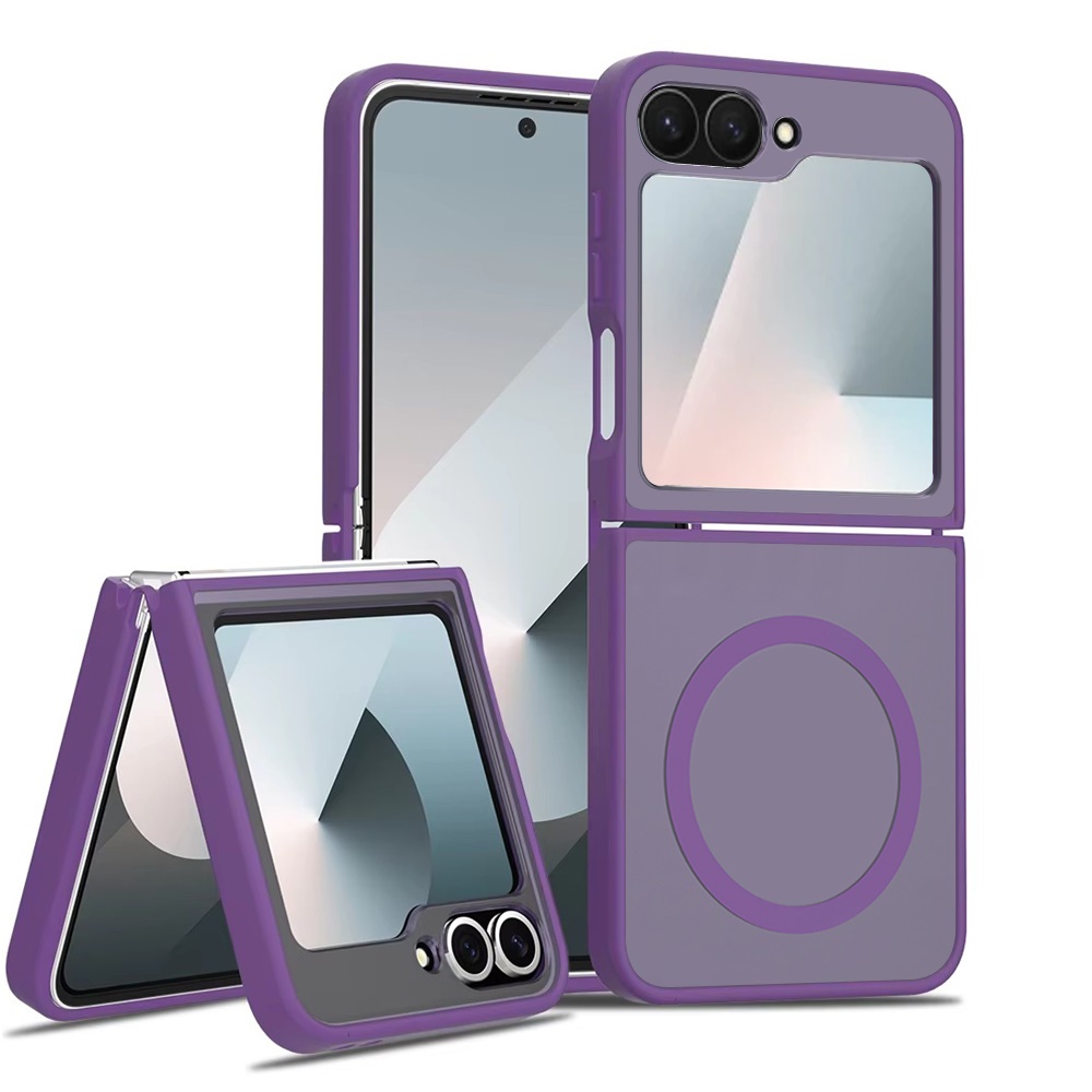 For Samsung Z Flip 6/Z Flip 7 FE [Magnetic Circle] Smooth Safe Matte Feel Hybrid Case - Dark Purple