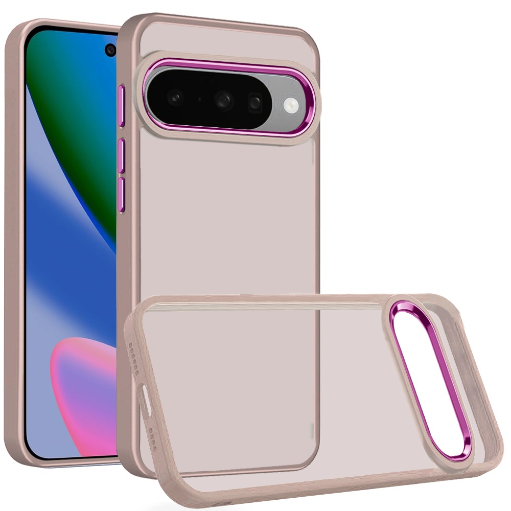 For Google Pixel 10/10 Pro Polished Oil Thick Acrylic Metal Button Hybrid Case Cover - Beige