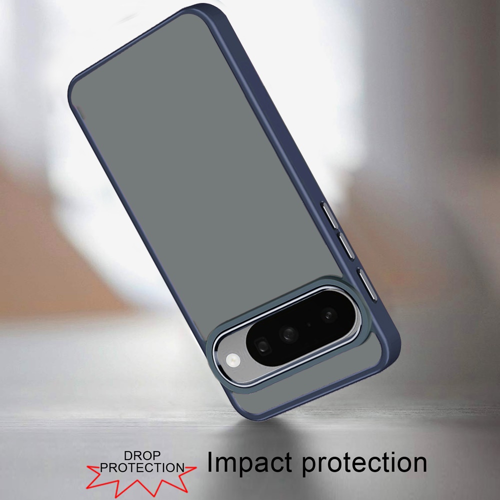 For Google Pixel 10/10 Pro Polished Oil Thick Acrylic Metal Button Hybrid Case Cover - Dark Blue