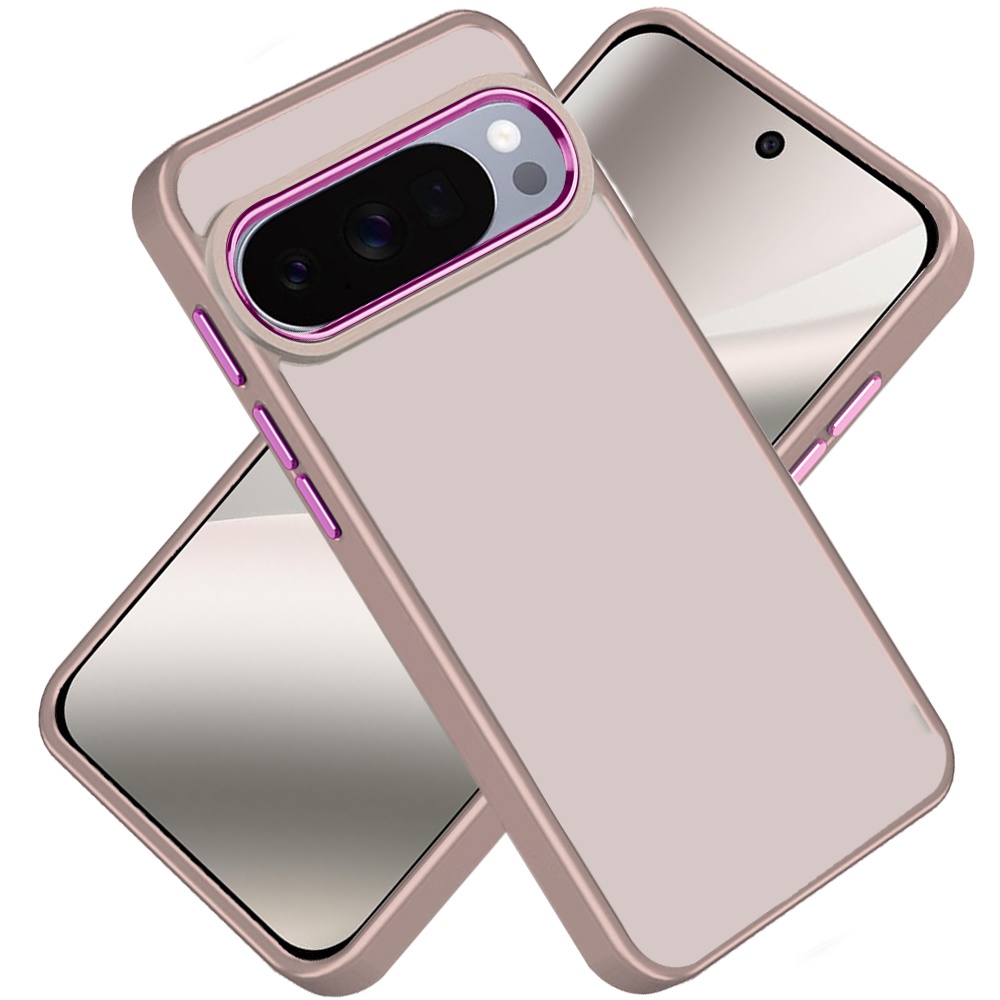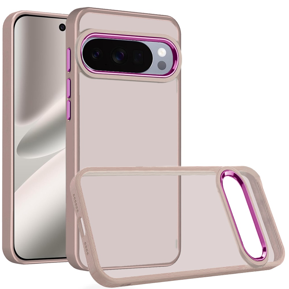 For Pixel 10 Pro XL Polished Oil Thick Acrylic Metal Button Hybrid Case Cover - Beige