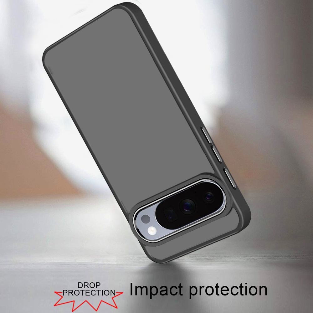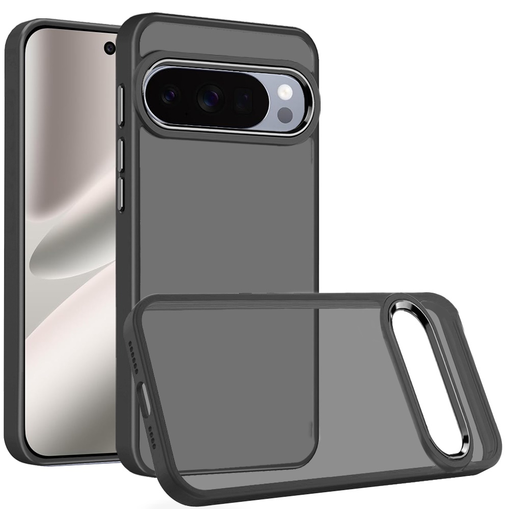 For Pixel 10 Pro XL Polished Oil Thick Acrylic Metal Button Hybrid Case Cover - Black