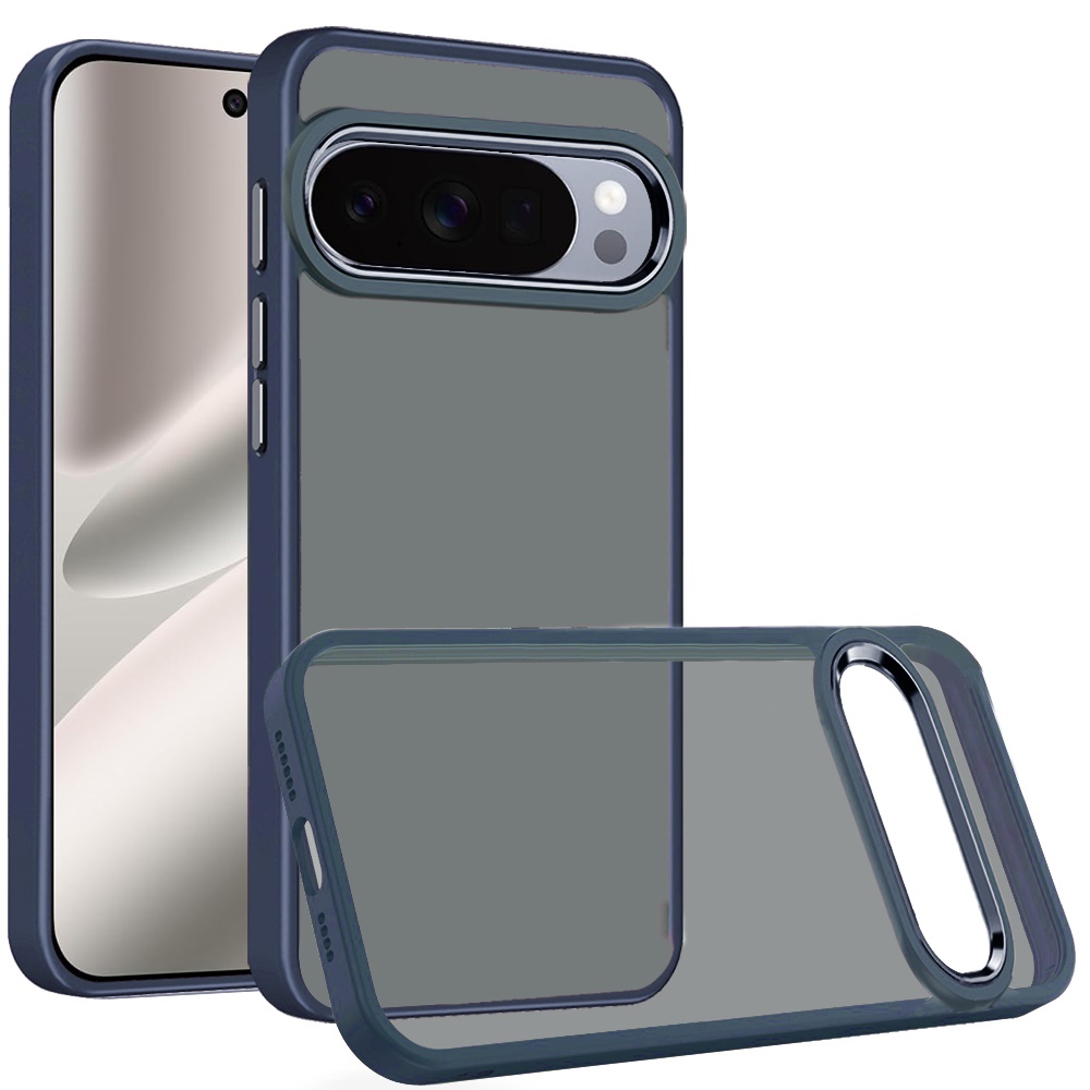 For Pixel 10 Pro XL Polished Oil Thick Acrylic Metal Button Hybrid Case Cover - Dark Blue