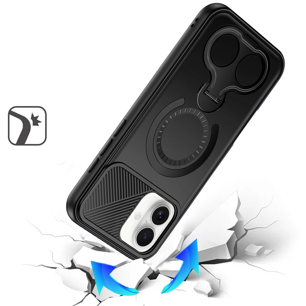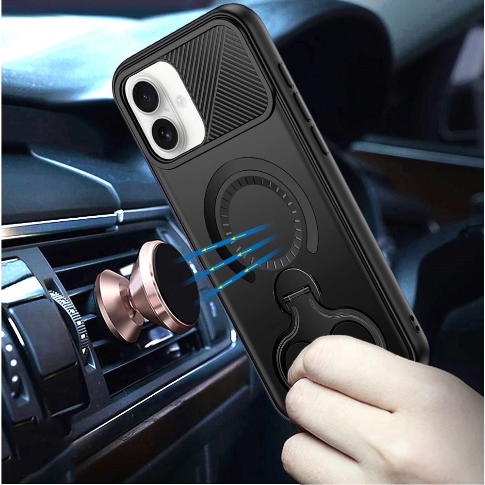 For iPhone 17 Car Mount with 2-Ring Stand Hybrid Case - Black