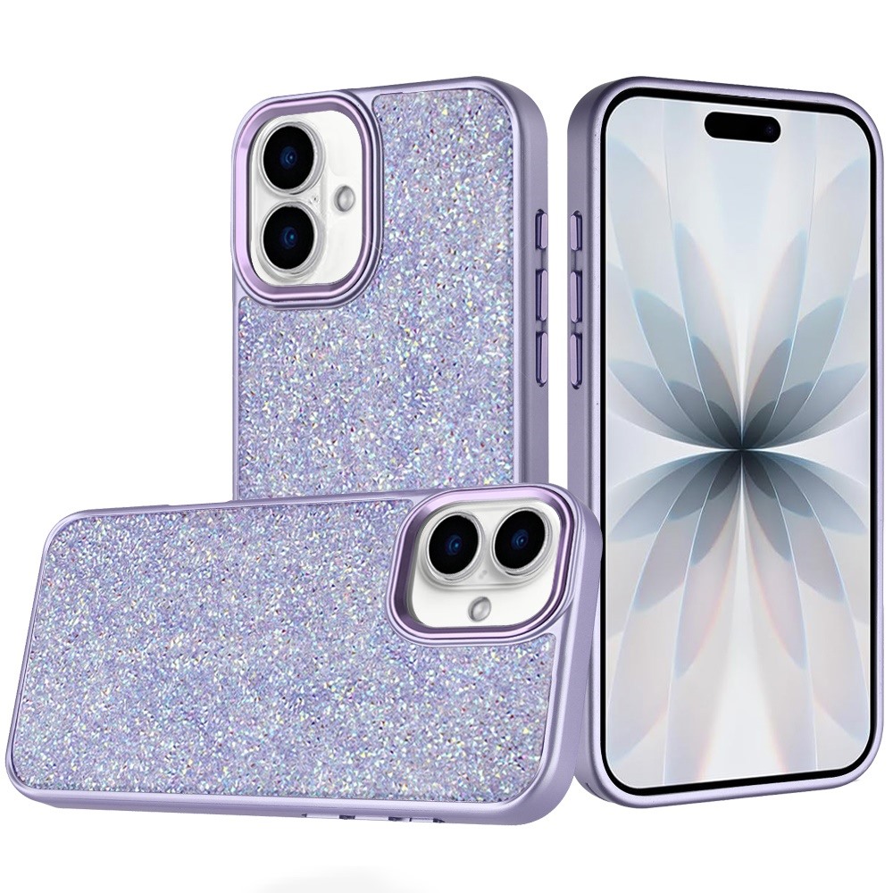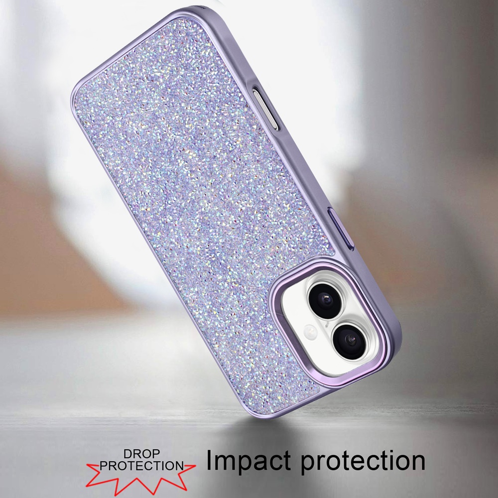 For iPhone 17 Crystal Glass Diamond with Metallic Buttons and Edges Hybrid Case - Dark Purple