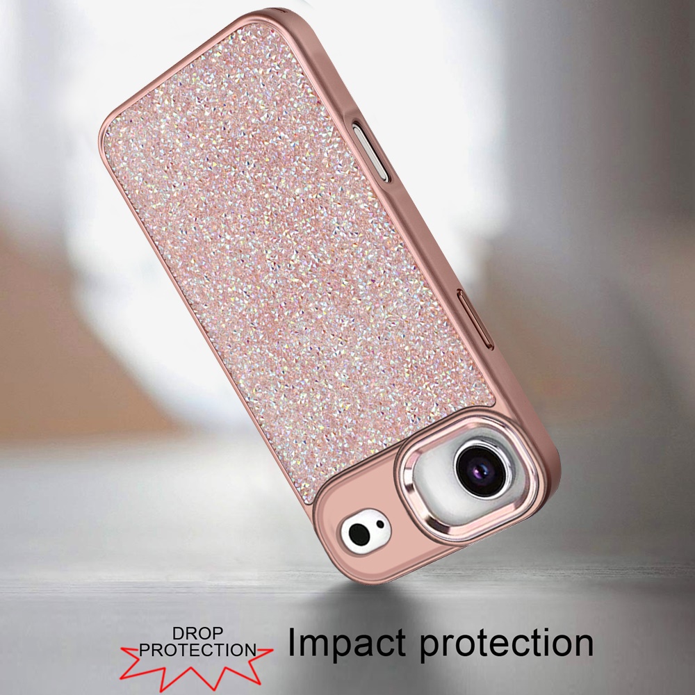 For iPhone 17 Air Crystal Glass Diamond with Metallic Buttons and Edges Hybrid Case - Rose Gold