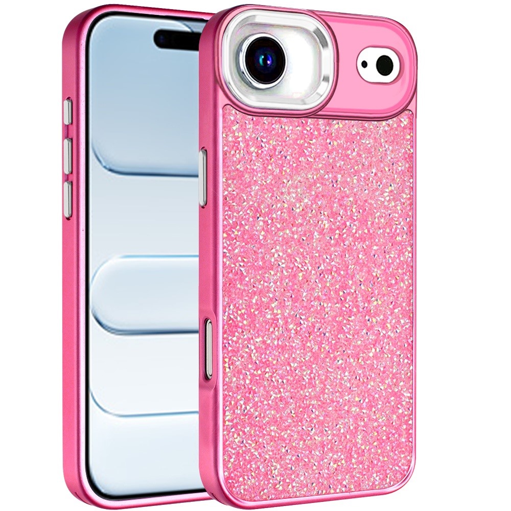 For iPhone 17 Air Crystal Glass Diamond with Metallic Buttons and Edges Hybrid Case - Hot Pink
