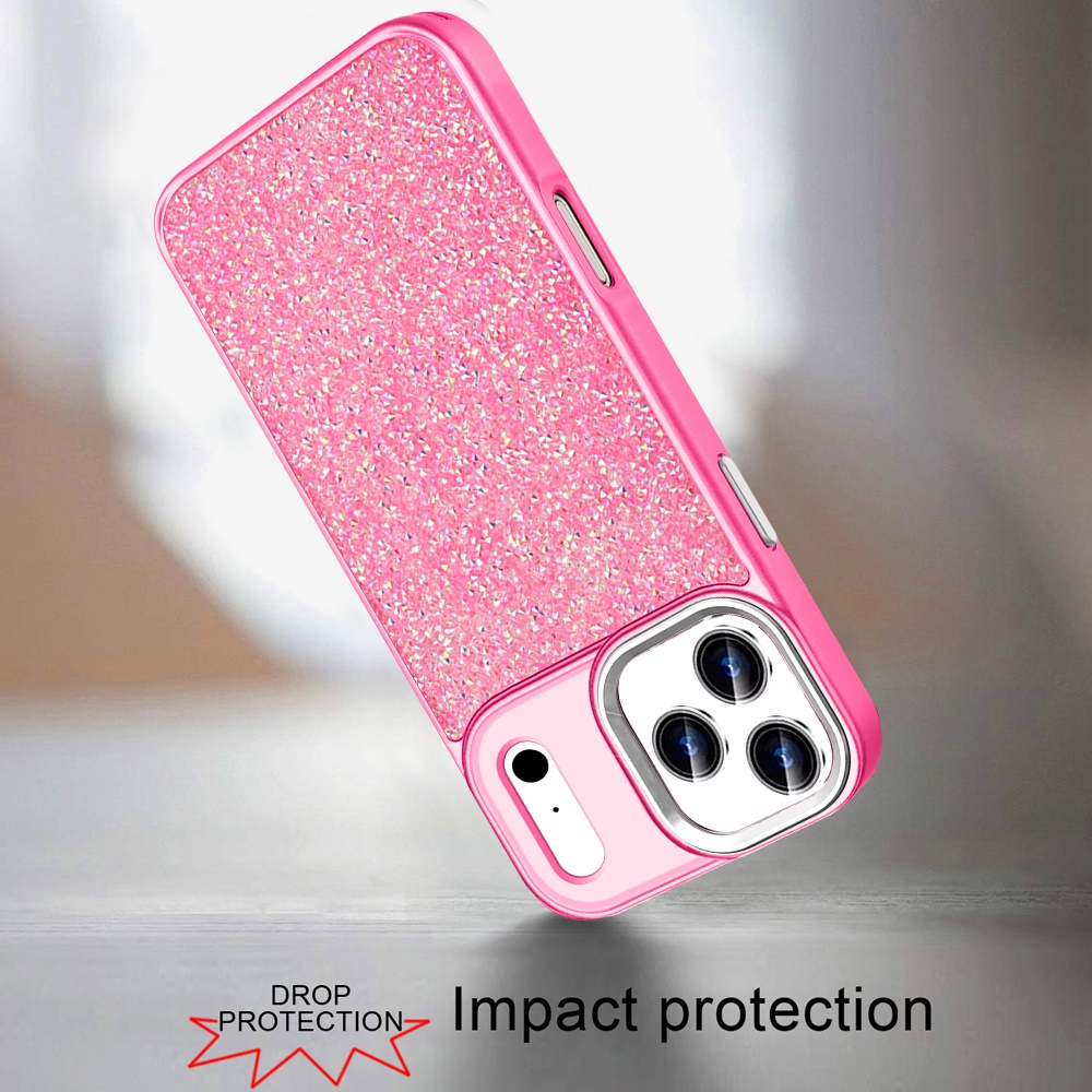 For iPhone 17 Pro Max Crystal Glass Diamond with Metallic Buttons and Edges Hybrid Case - Hot Pink