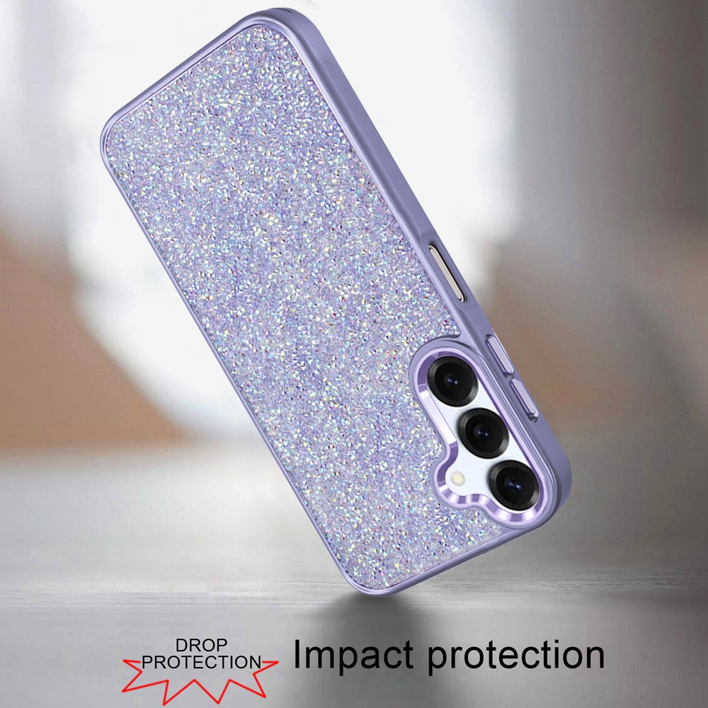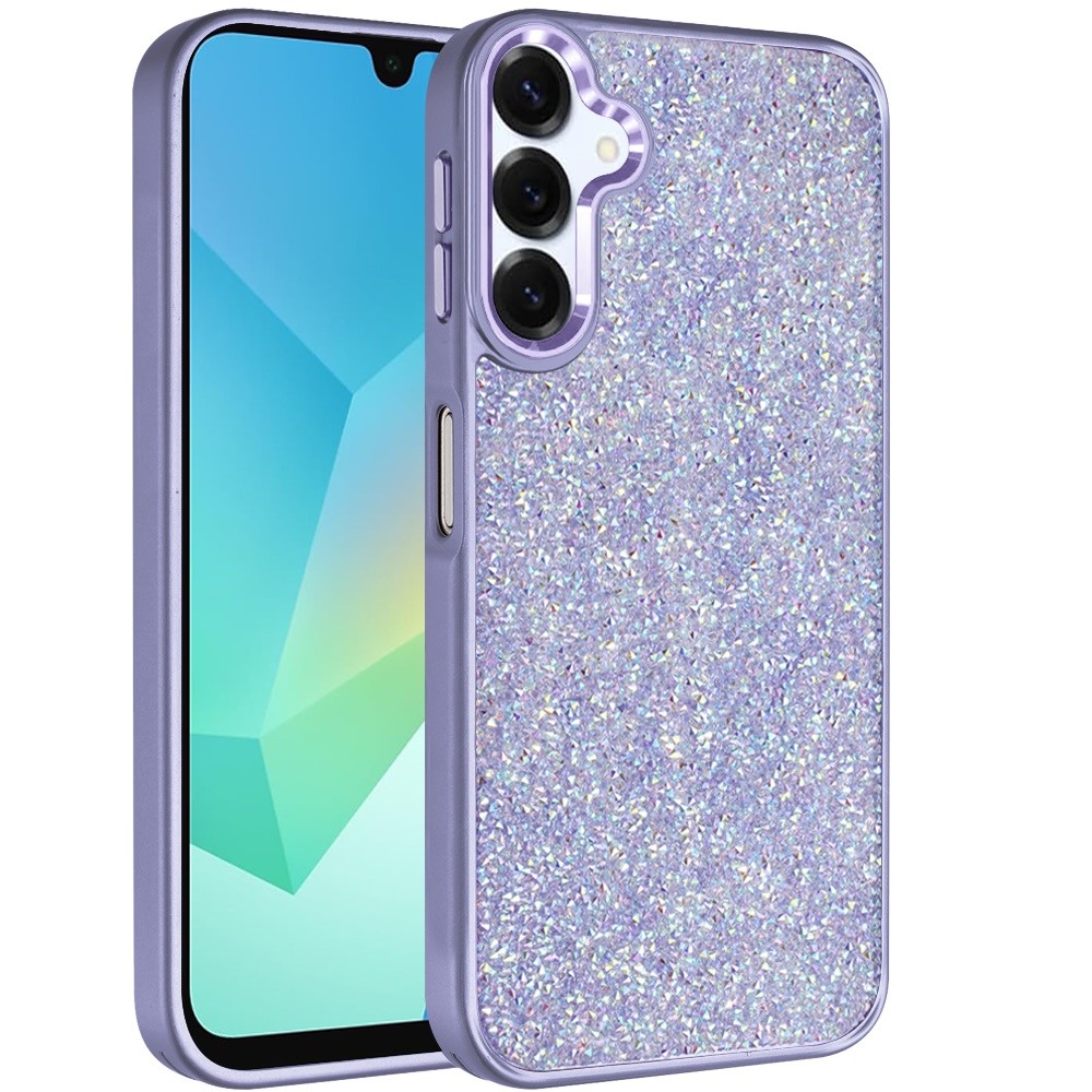 For Samsung A16 5G Crystal Glass Diamond with Metallic Buttons and Edges Hybrid Case - Dark Purple