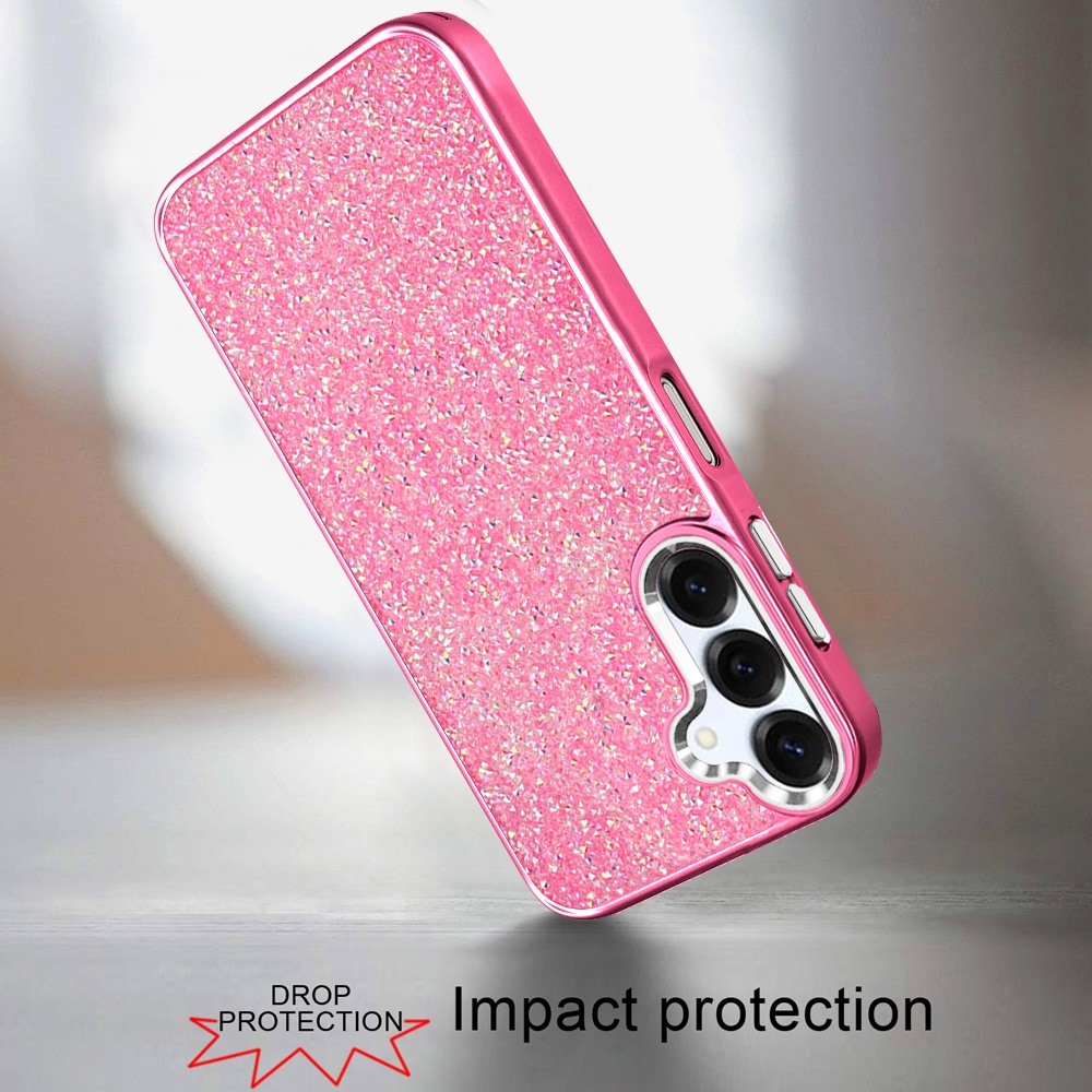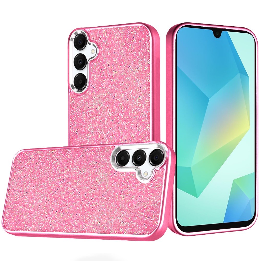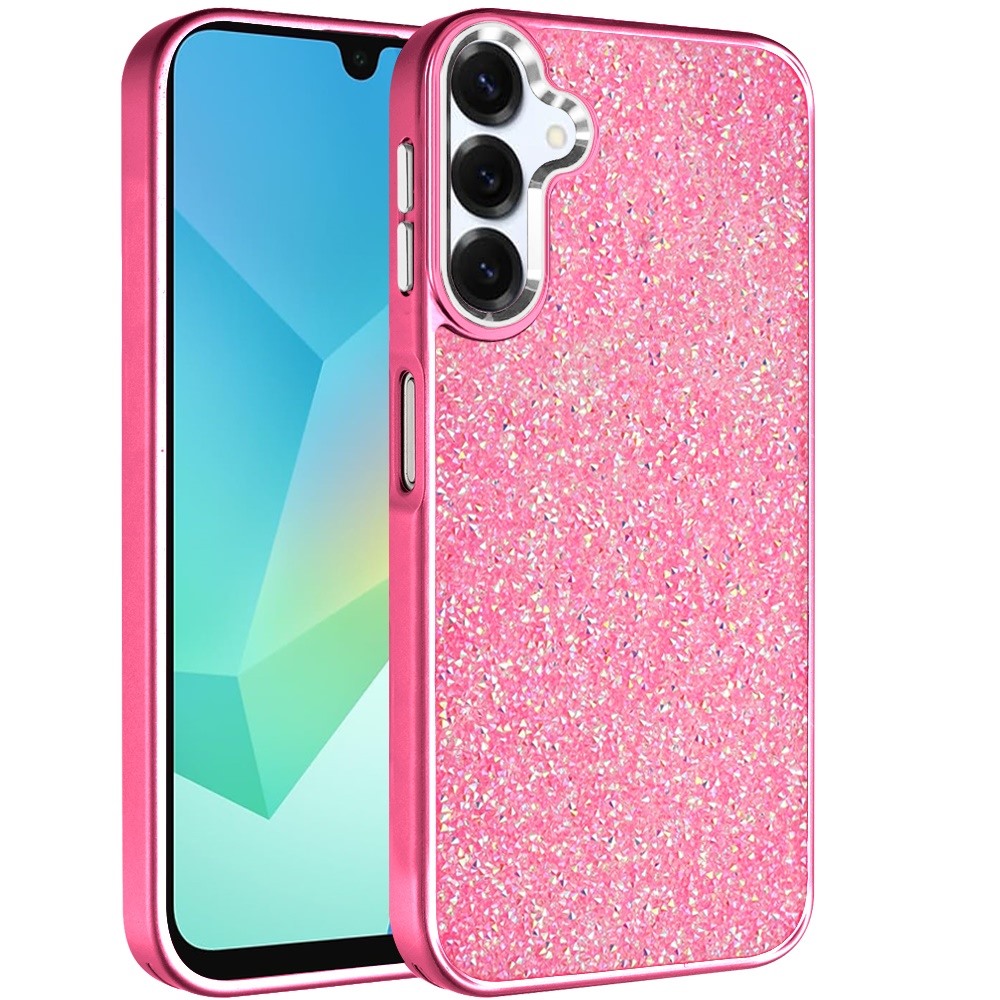 For Samsung A16 5G Crystal Glass Diamond with Metallic Buttons and Edges Hybrid Case - Hot Pink