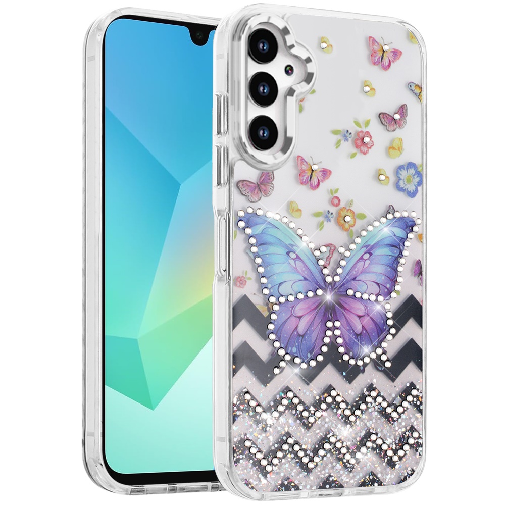 For Samsung A16 5G Resin Epoxy Design Diamond Metal Edged Hybrid Case - A