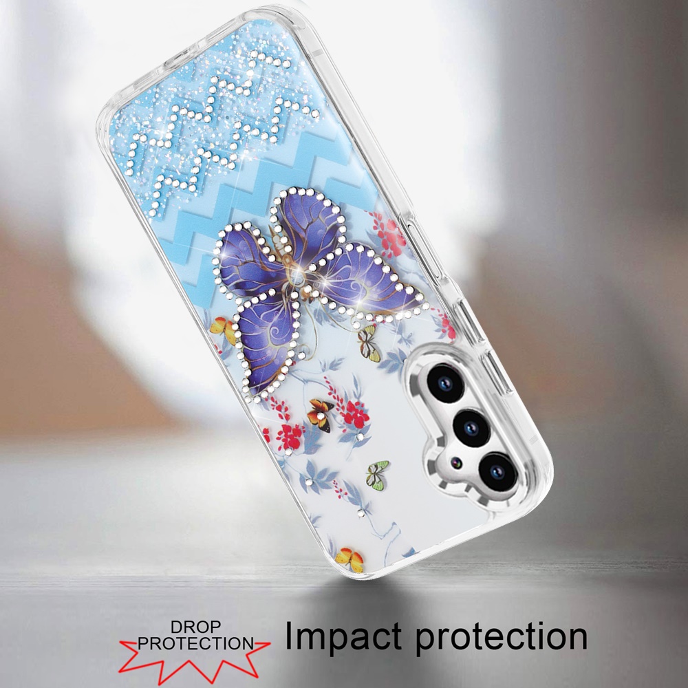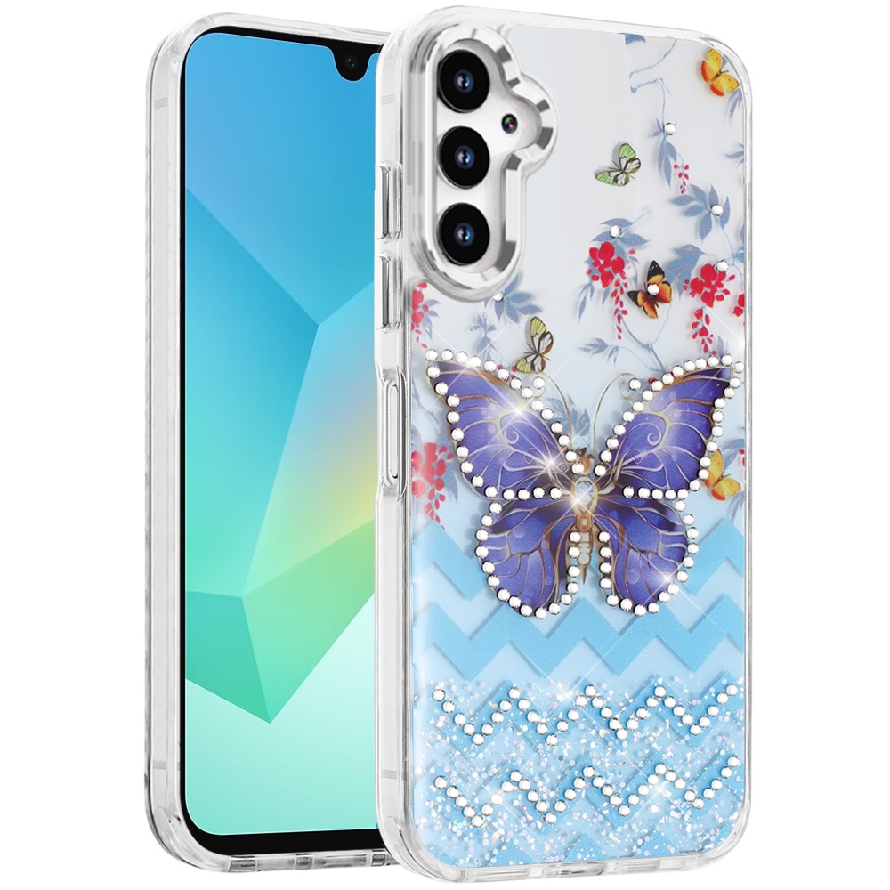 For Samsung A16 5G Resin Epoxy Design Diamond Metal Edged Hybrid Case - D