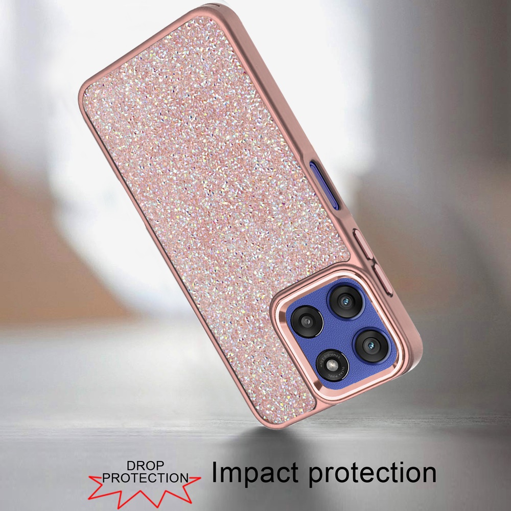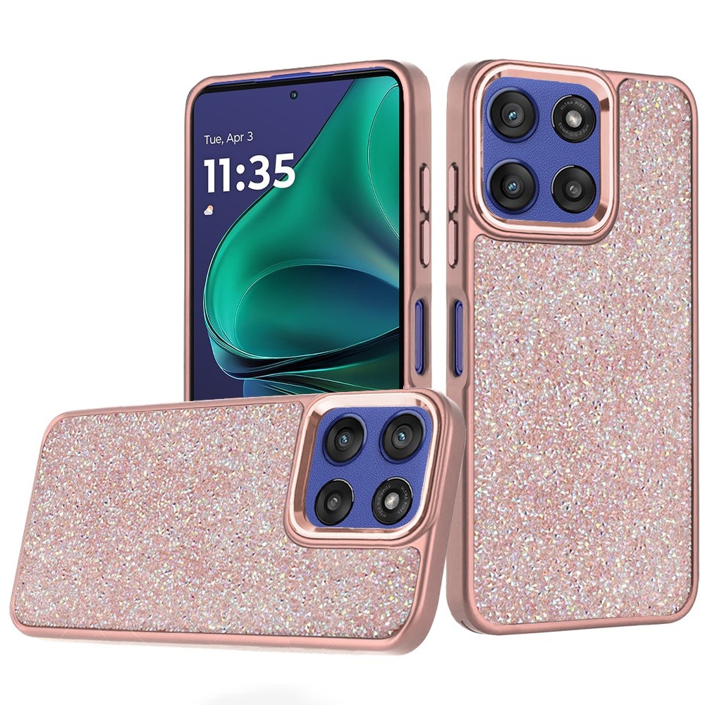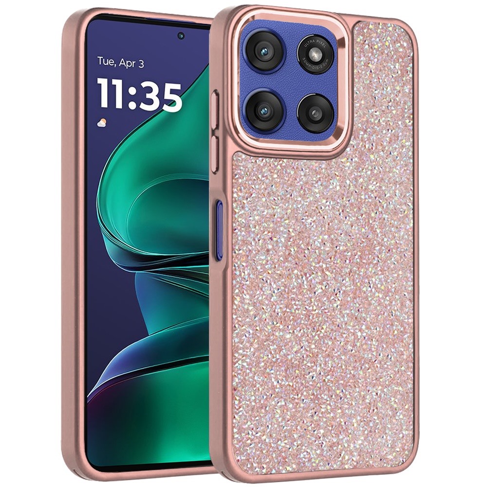 For Moto G Stylus 5G 2025 Crystal Glass Diamond with Metallic Buttons and Edges Hybrid Case - Rose Gold