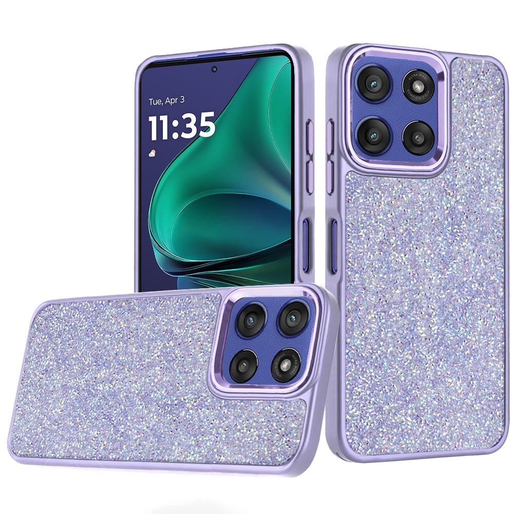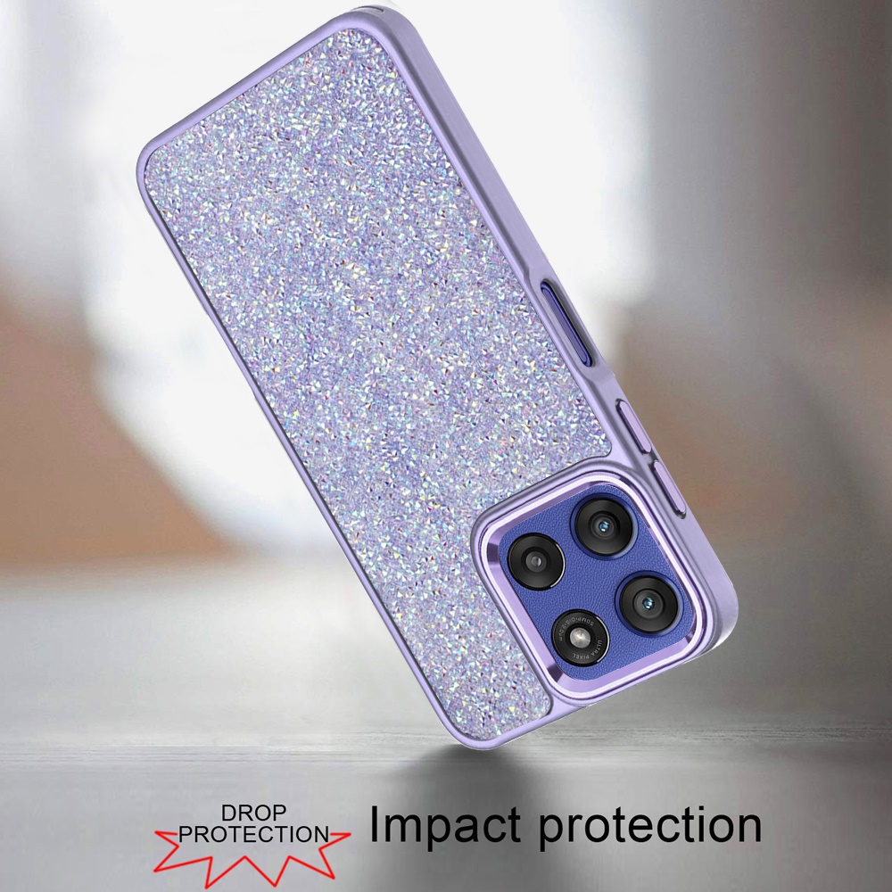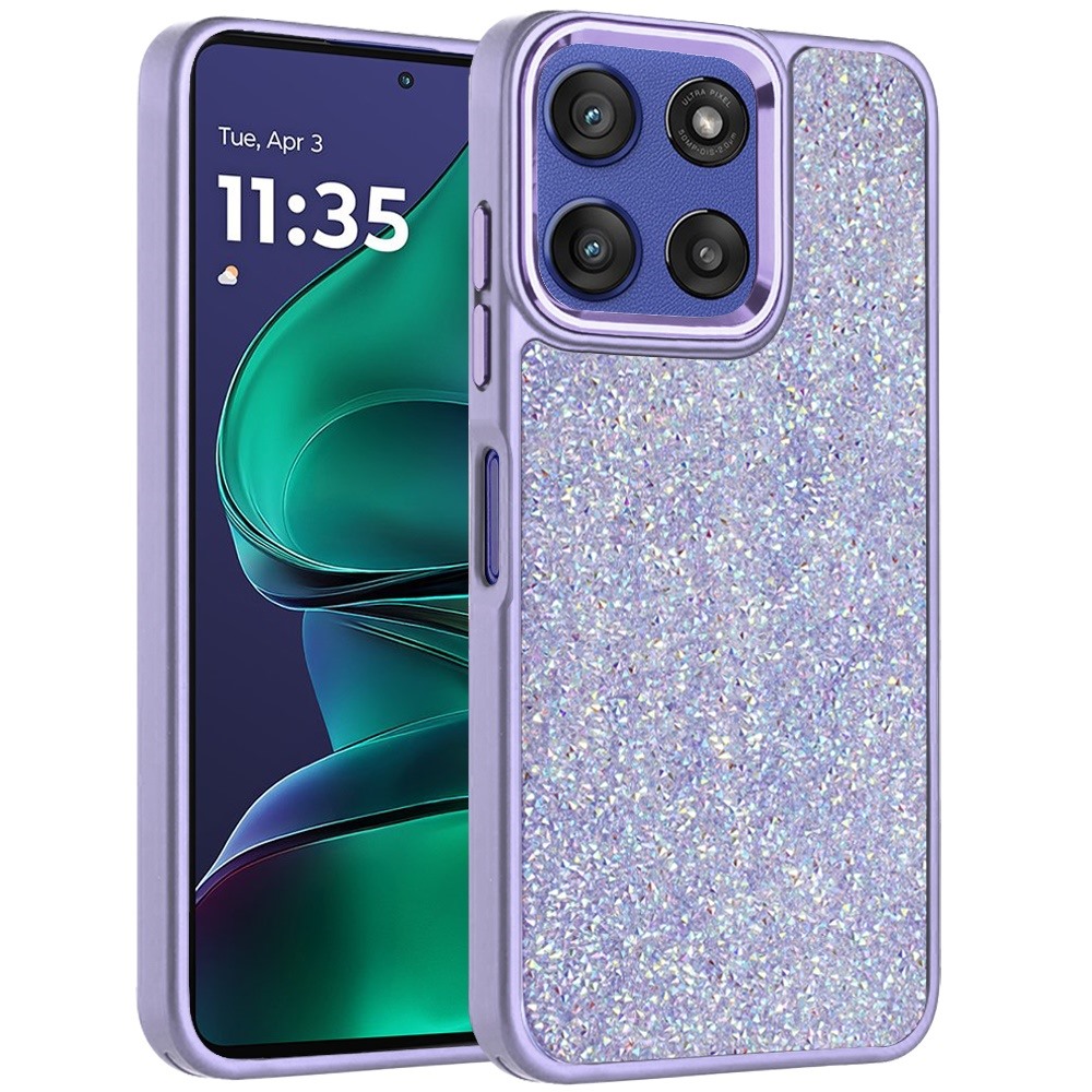 For Moto G Stylus 5G 2025 Crystal Glass Diamond with Metallic Buttons and Edges Hybrid Case - Dark Purple