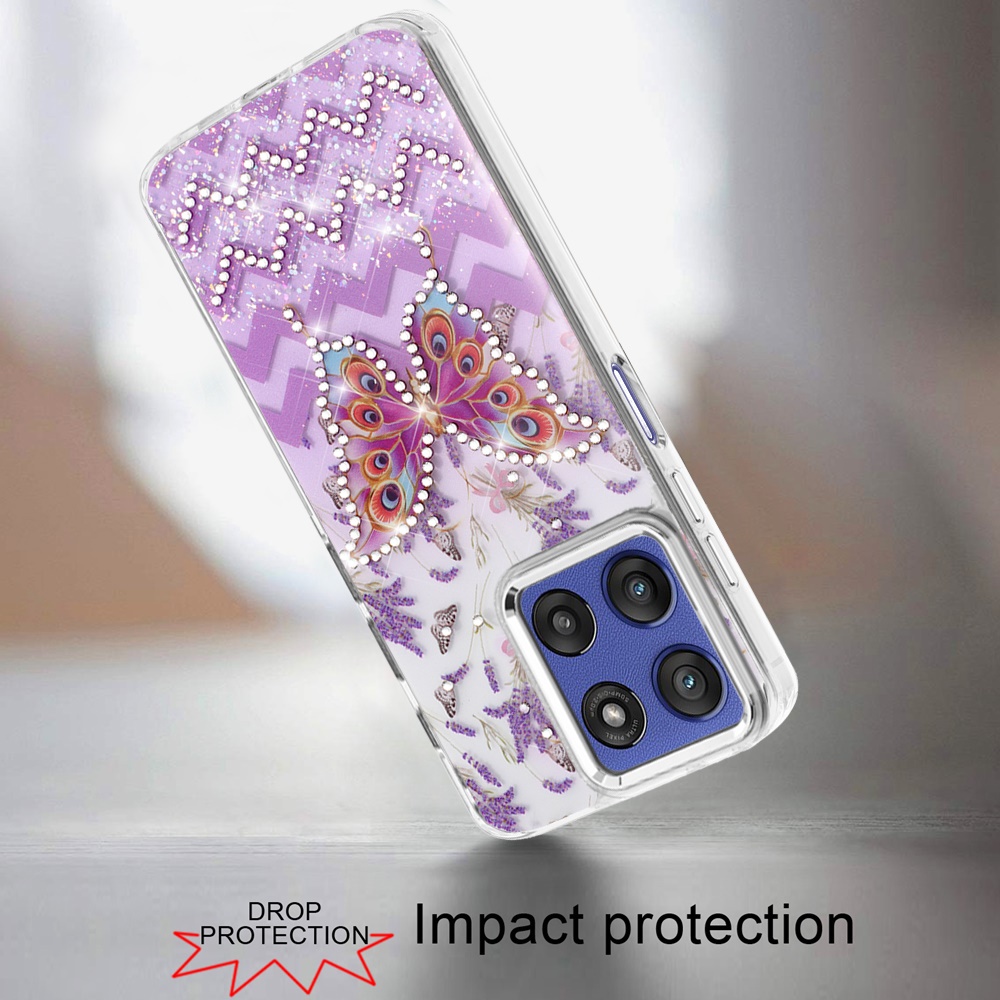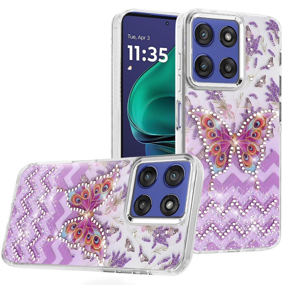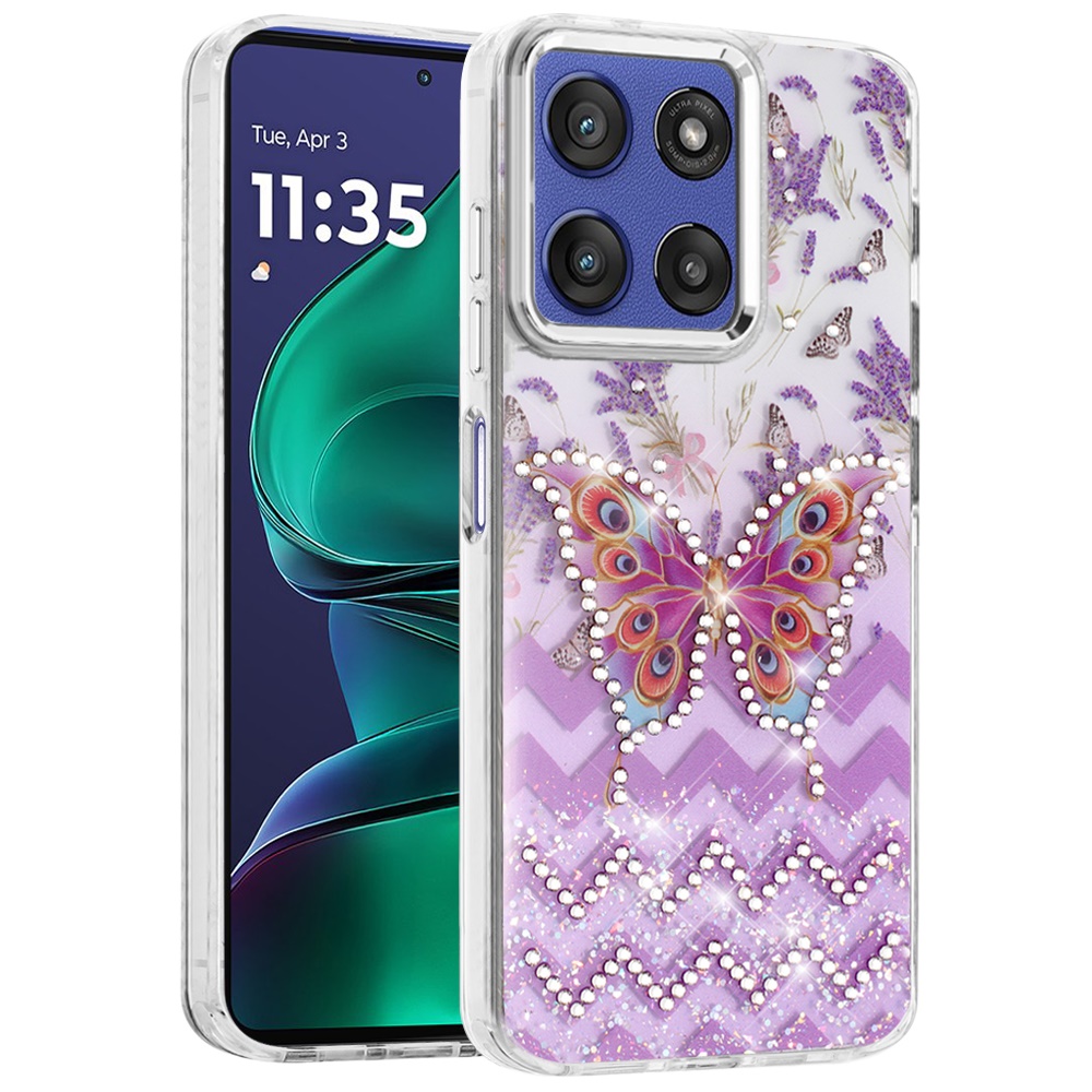 For Moto G Stylus 5G 2025 Resin Epoxy Design Diamond Metal Edged Hybrid Case - B