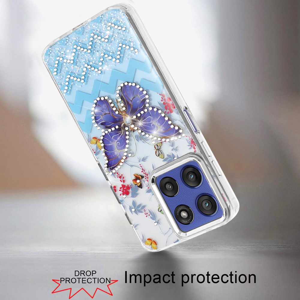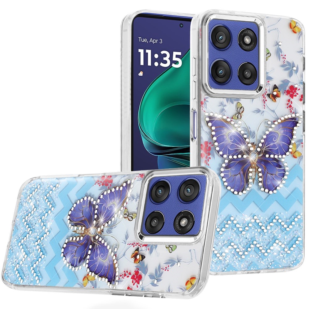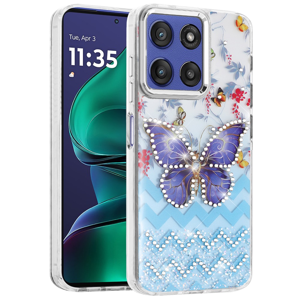 For Moto G Stylus 5G 2025 Resin Epoxy Design Diamond Metal Edged Hybrid Case - D