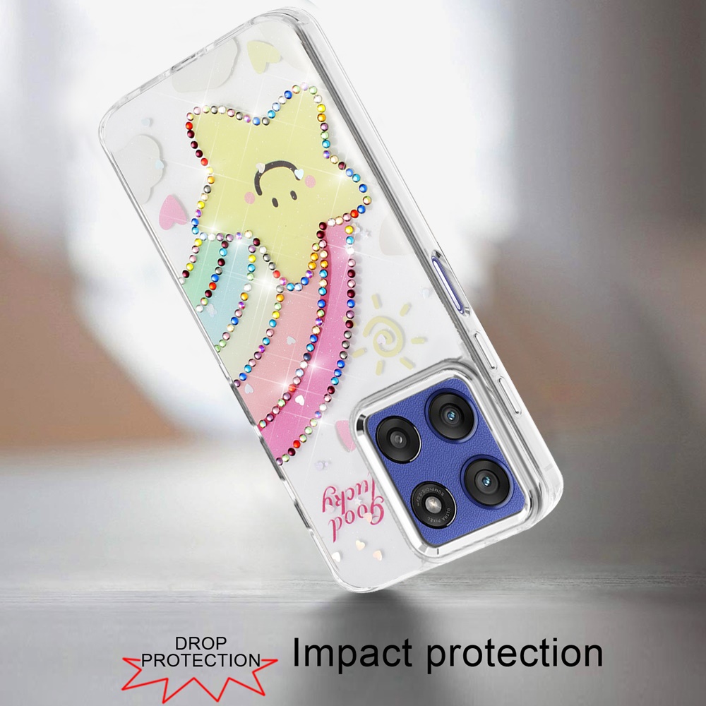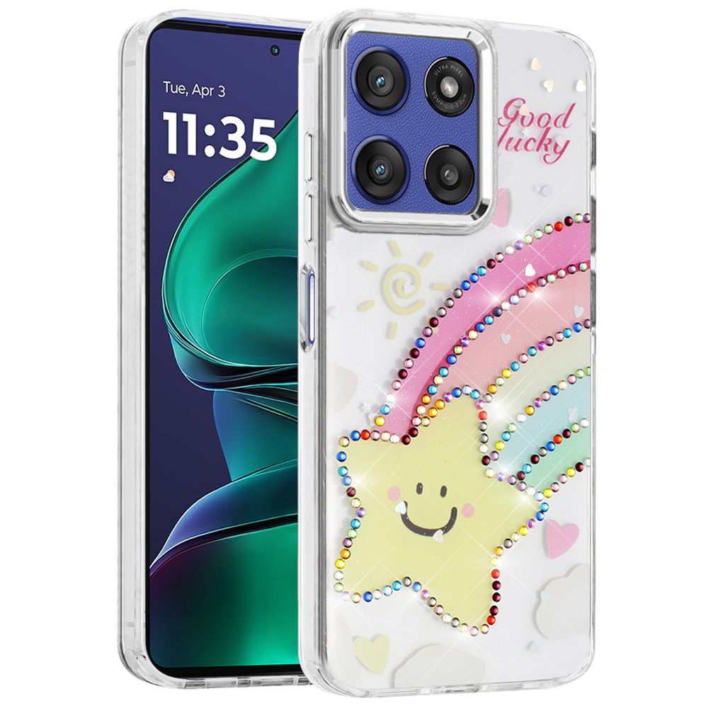 For Moto G Stylus 5G 2025 Resin Epoxy Design Diamond Metal Edged Hybrid Case - H