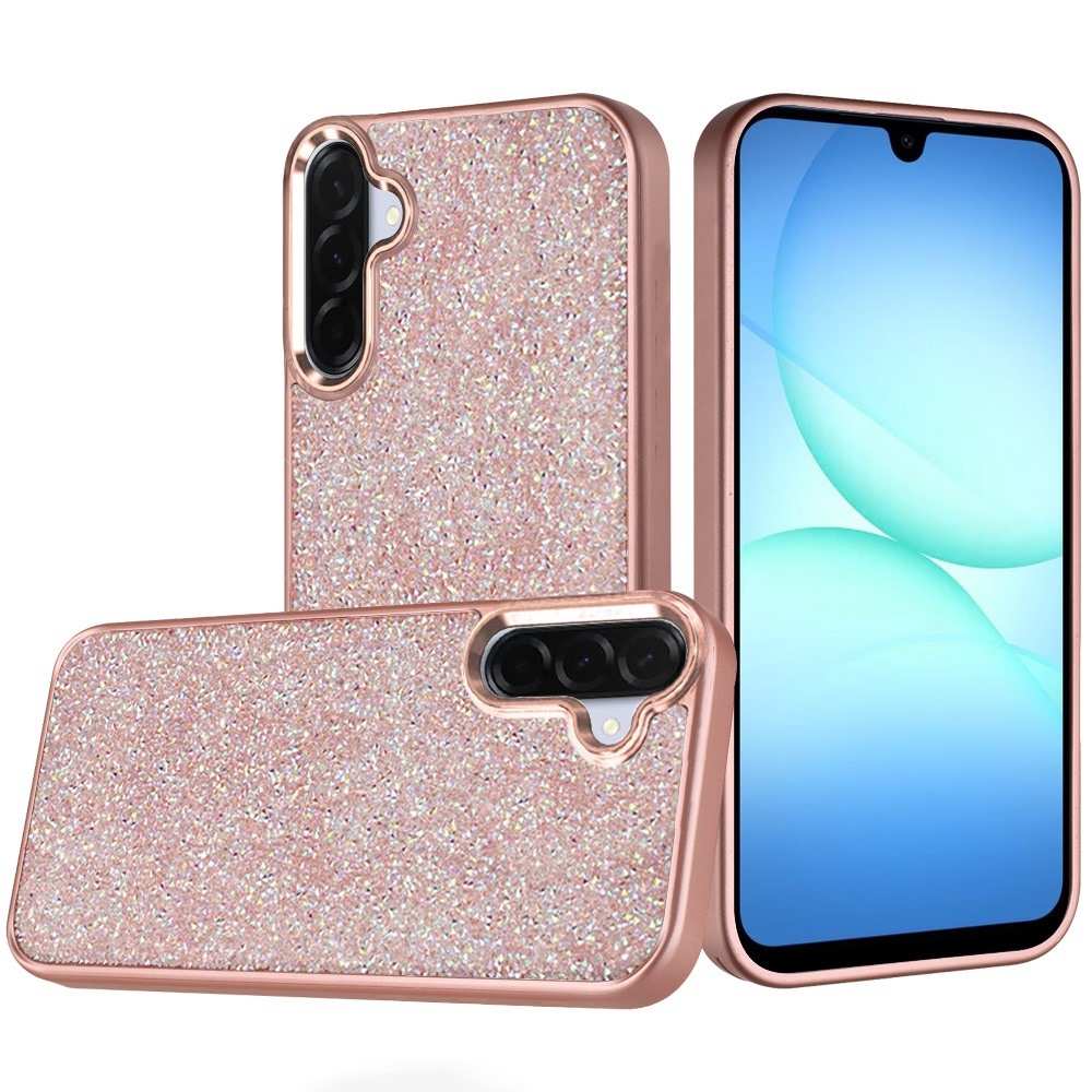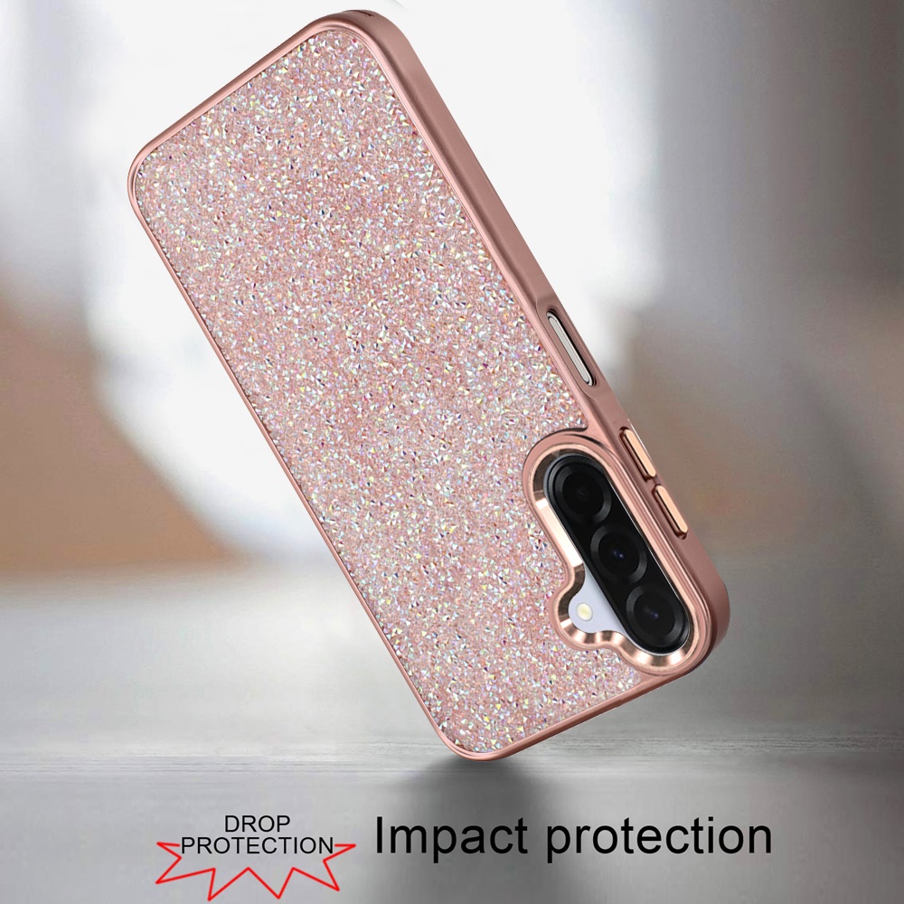 For Samsung A17 5G Crystal Glass Diamond with Metallic Buttons and Edges Hybrid Case - Rose Gold