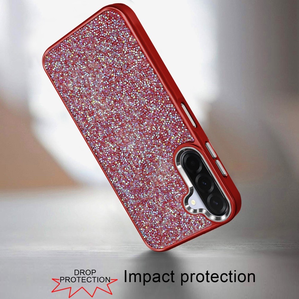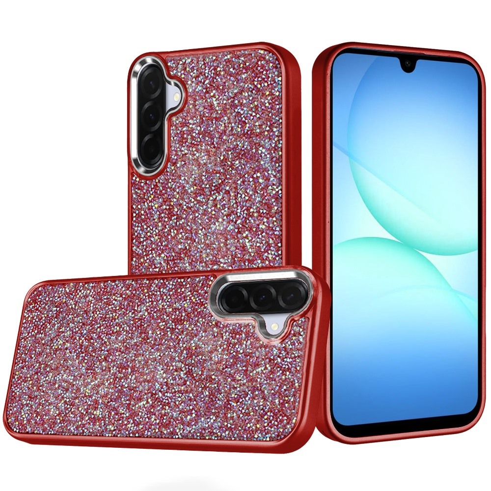 For Samsung A17 5G Crystal Glass Diamond with Metallic Buttons and Edges Hybrid Case - Red