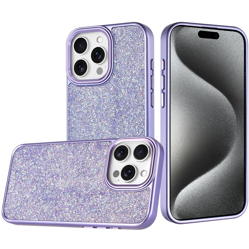 For iP15 Pro Max Crystal Glass Diamond with Metallic Buttons and Edges Hybrid Case - Dark Purple