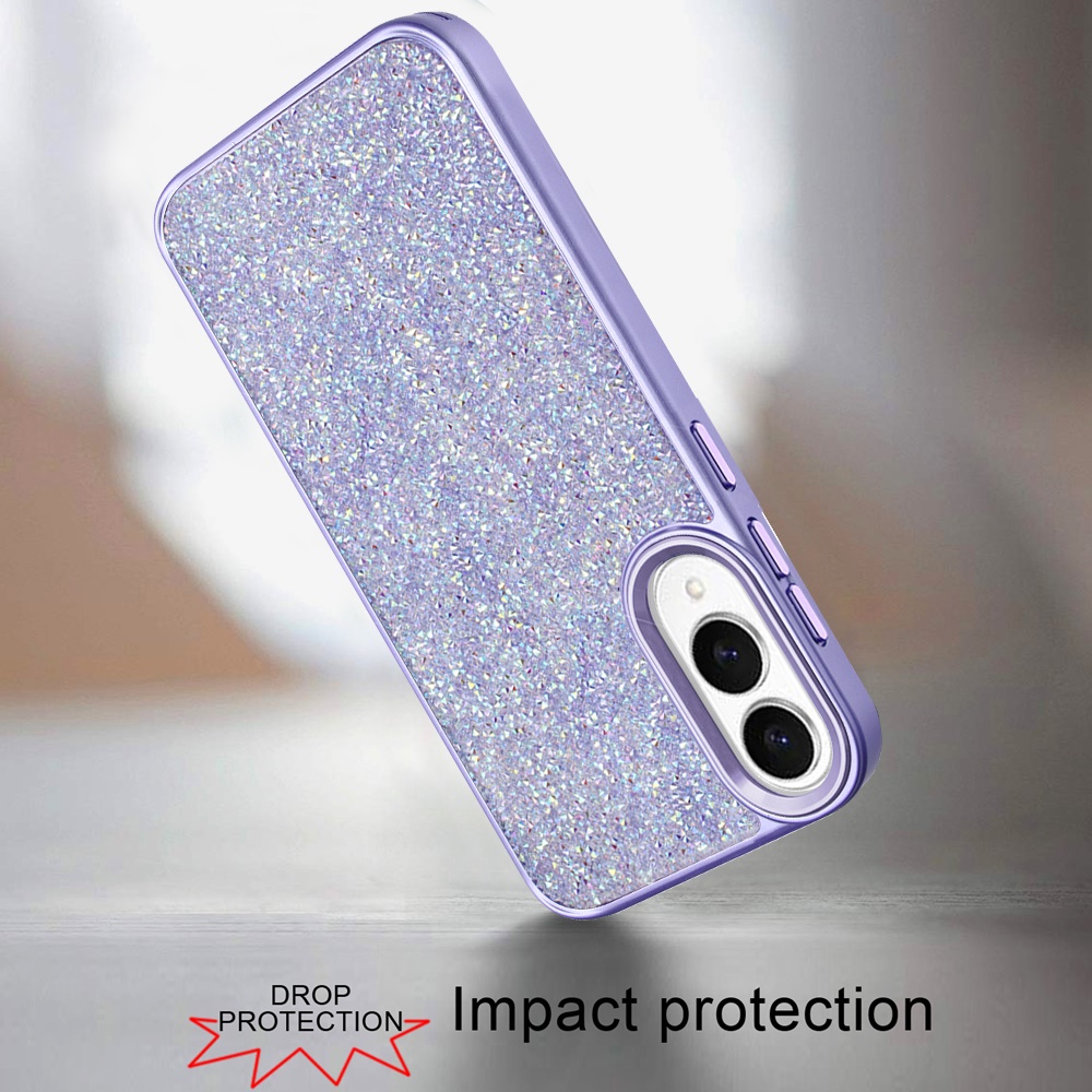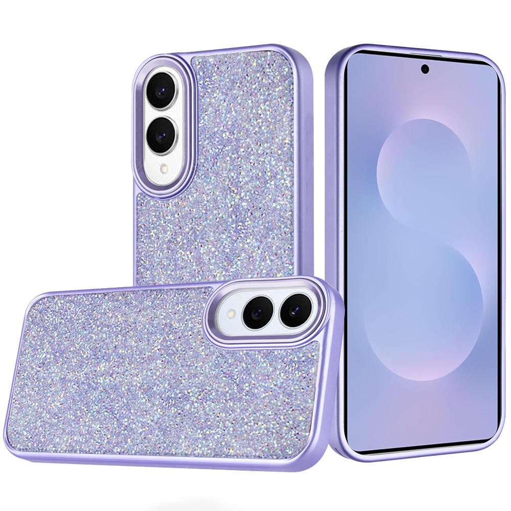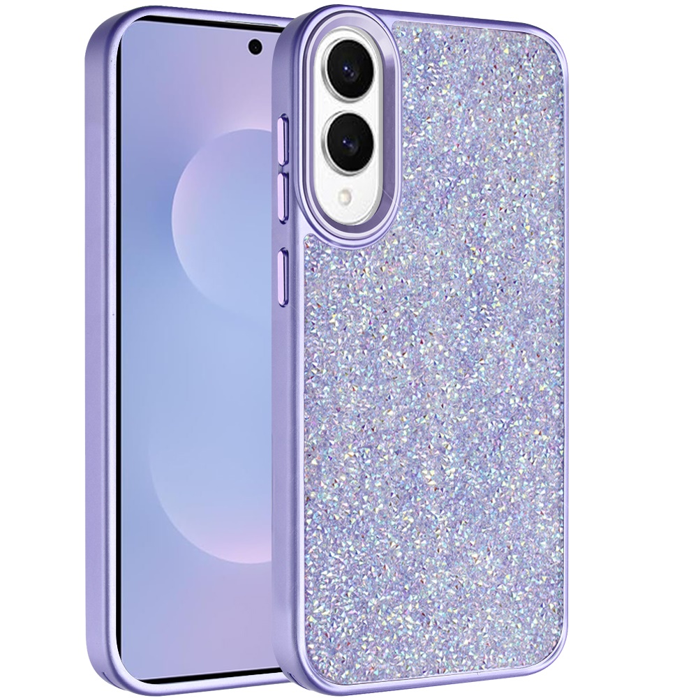 For Samsung Galaxy s25 Edge Crystal Glass Diamond with Metallic Buttons and Edges Hybrid Case - Dark Purple