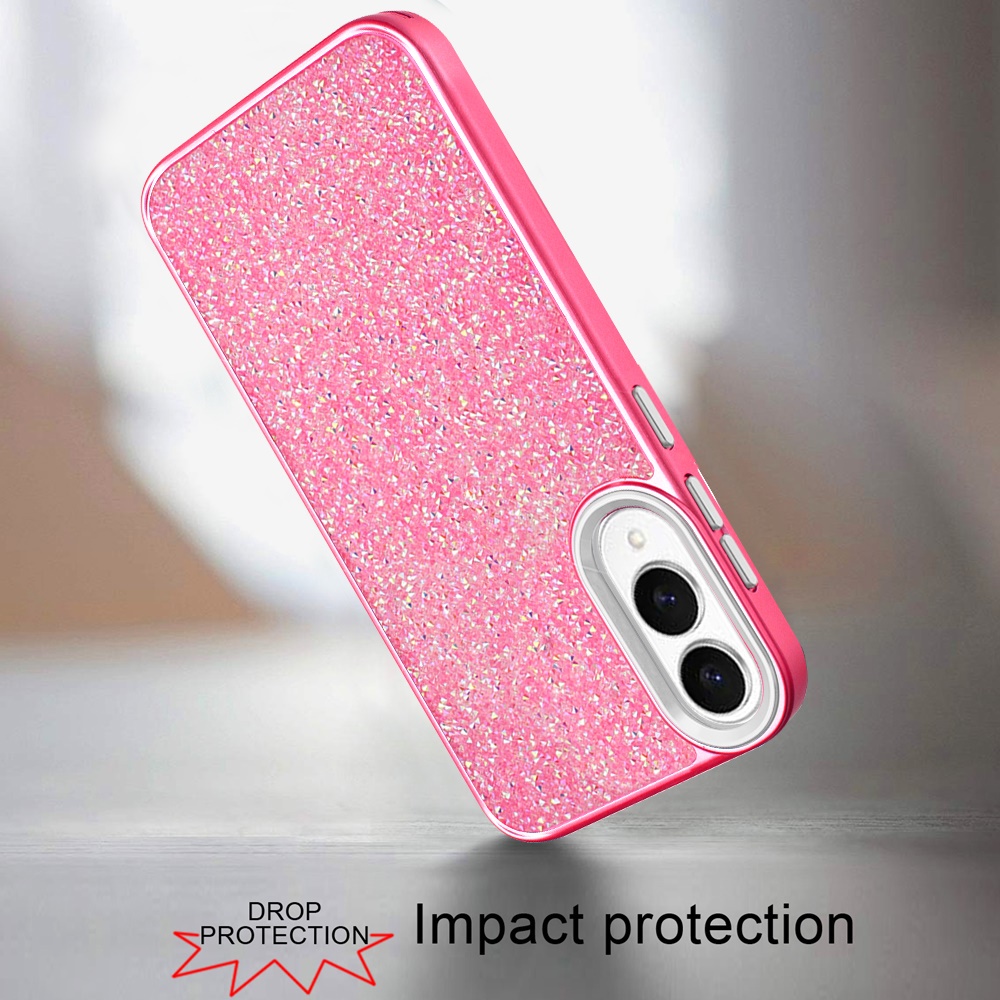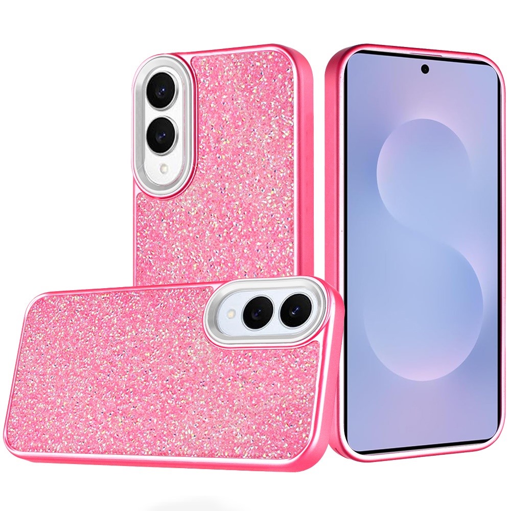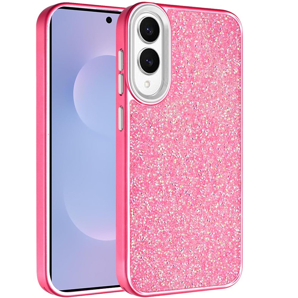 For Samsung Galaxy s25 Edge Crystal Glass Diamond with Metallic Buttons and Edges Hybrid Case - Hot Pink