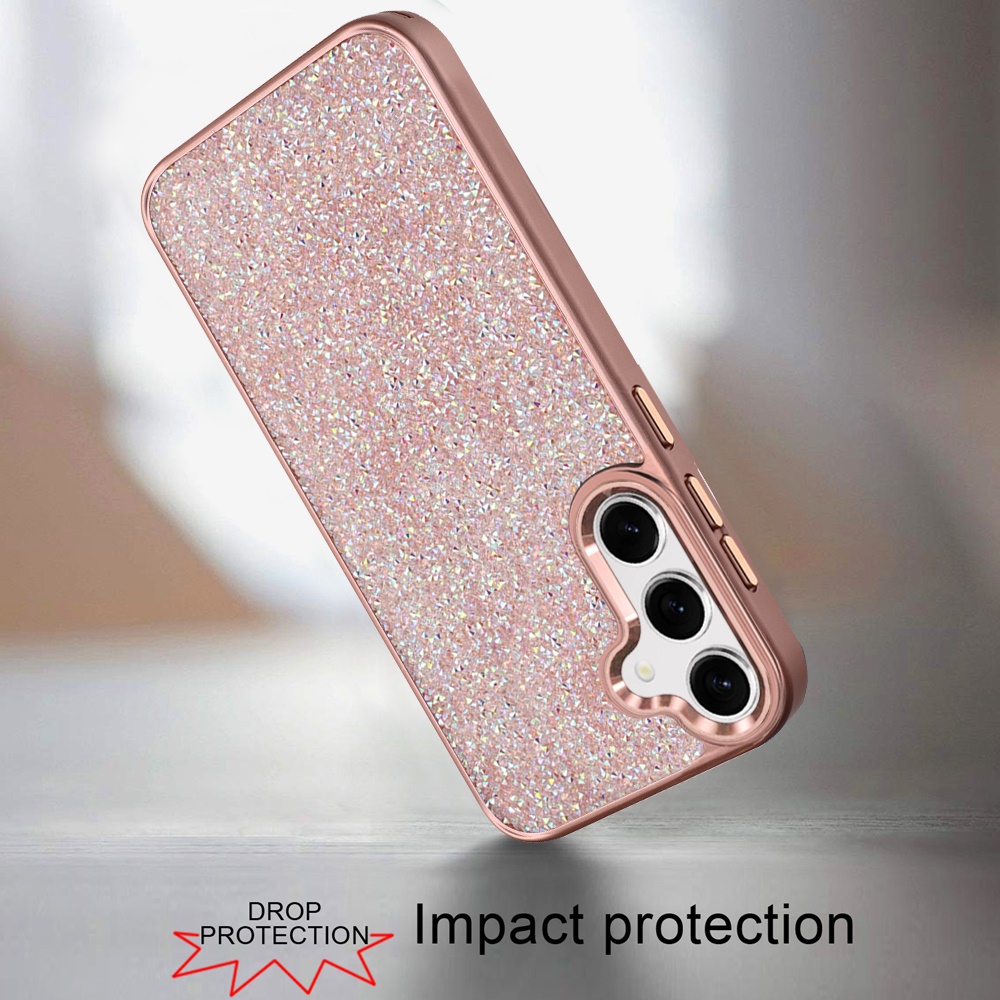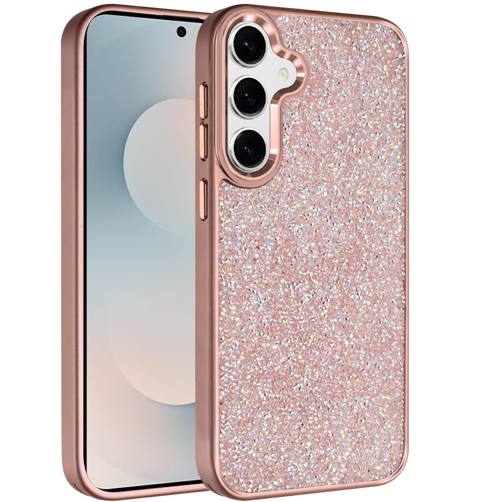 For Samsung s25 FE Crystal Glass Diamond with Metallic Buttons and Edges Hybrid Case - Rose Gold