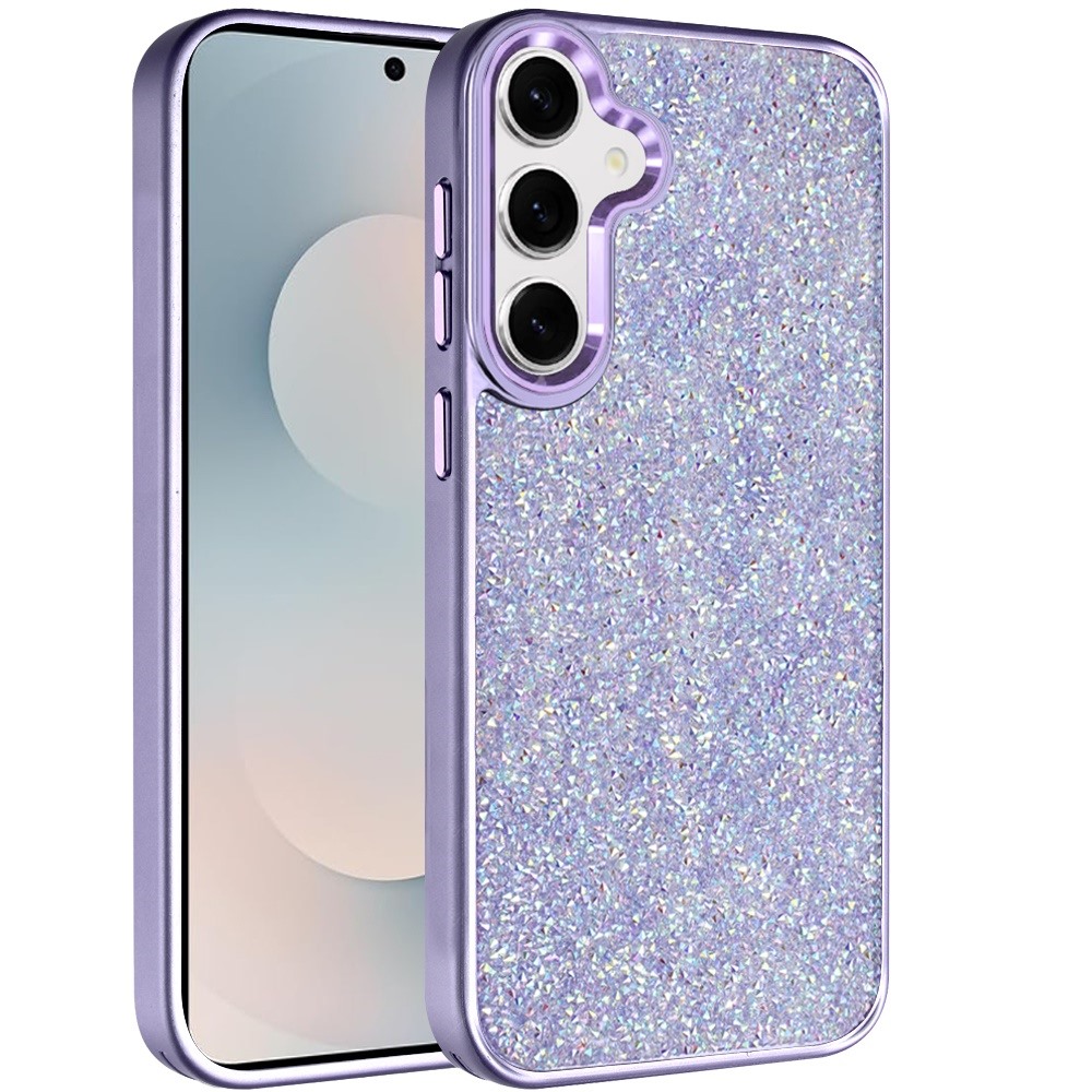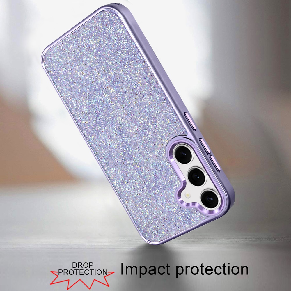 For Samsung s25 FE Crystal Glass Diamond with Metallic Buttons and Edges Hybrid Case - Dark Purple