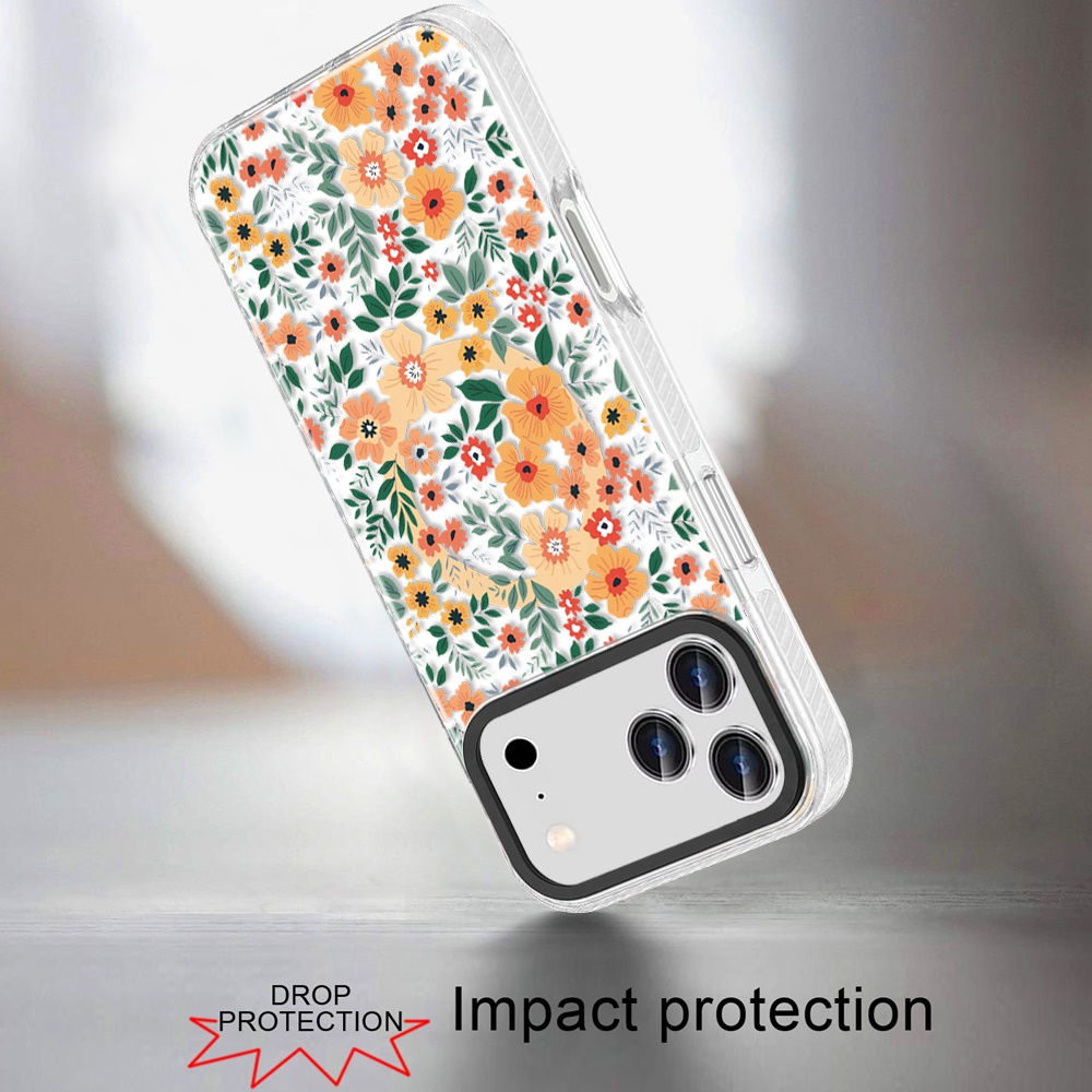 For iPhone 17 Pro Max Beautiful Magnetic Hybrid IMD Design Case - Delicate Orange White Florals