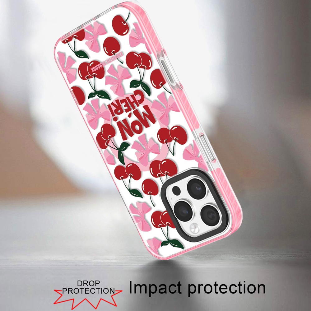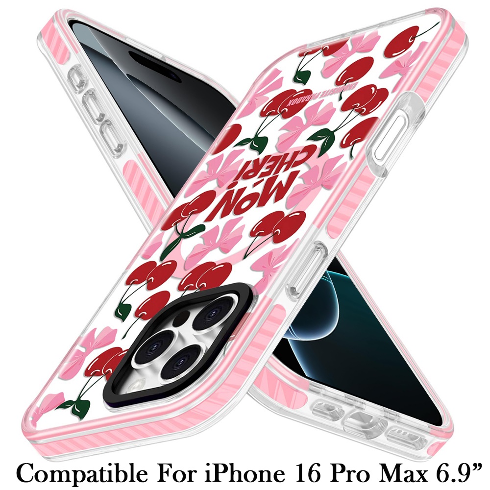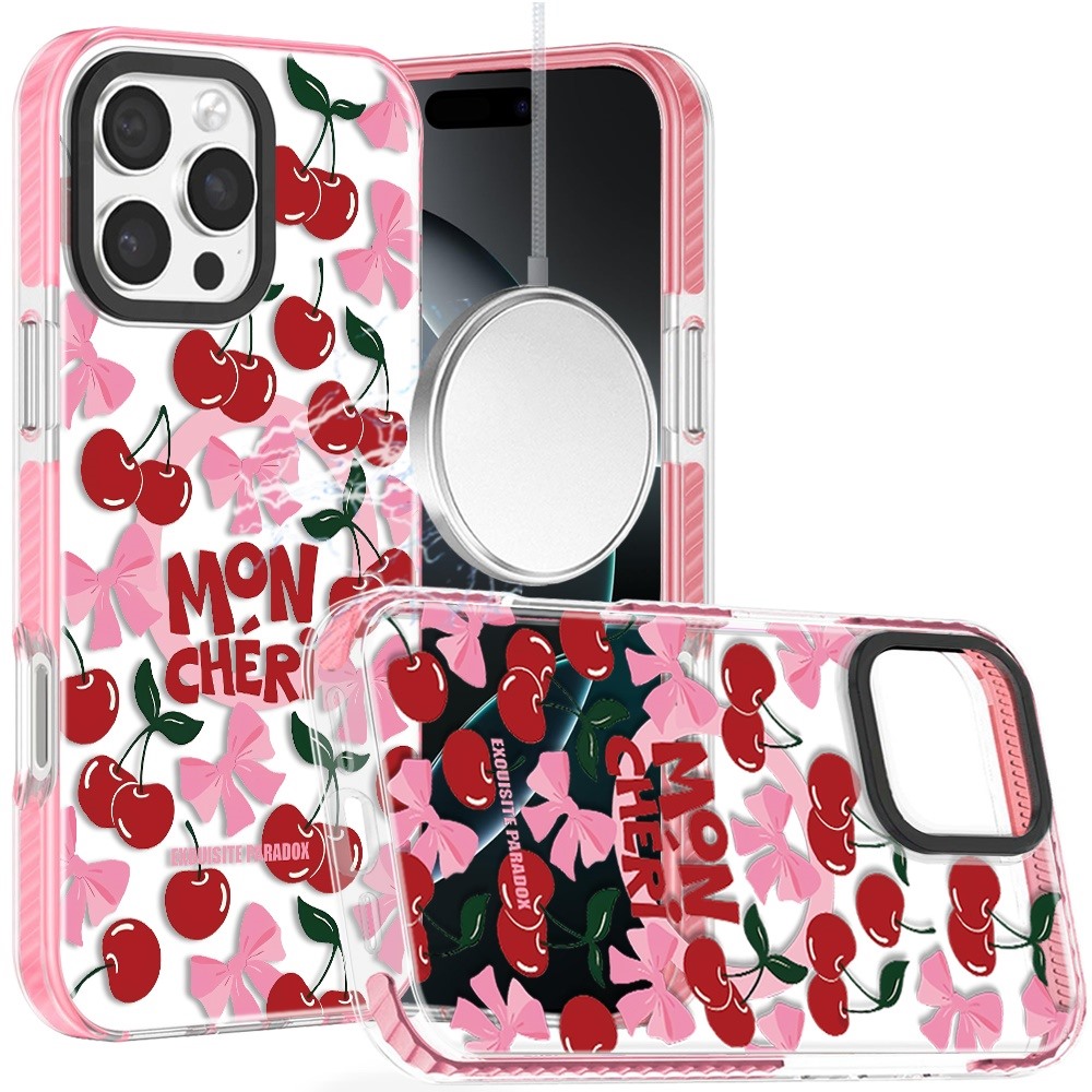 For iPhone 16 Pro Max 6.9 Beautiful Magnetic Hybrid IMD Design Case - Red Cherries